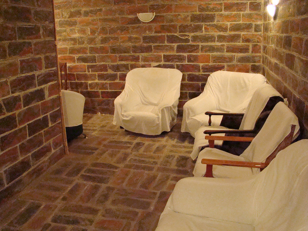 Здание – 2-х этажное. 1-й этаж вход, касса, зал для посетителей бассейна (настенные фены, банкетки для отдыха, гардероб для верхней одежды, обуви, туалетные комнаты), раздевалки (шкафчики для одежды, банкетки), душевые кабинки, туалетные кабинки. Далее посетитель проходит в зал выбора сауны и выхода в открытый бассейн. Здесь работает мед.работник (измерение арт.давления, осмотр на предмет поражения кожных покровов, грибковые заболевания). Сауны – финская сухая, византийская (лакониум). Два варианта выхода к бассейну: из дверей и выход по тоннелю (вход в бассейн в помещении и выплываем в чашу бассейна по тоннелю 2м.)