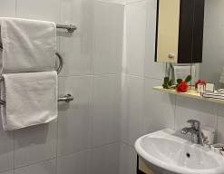 биде, с душем, туалетные принадлежности, фен, халат
