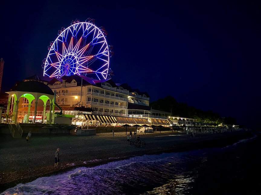 Расположение: Первая линия у моря (30 м до пляжа), 80 км до центра Сочи, 100 км до аэропорта Адлера