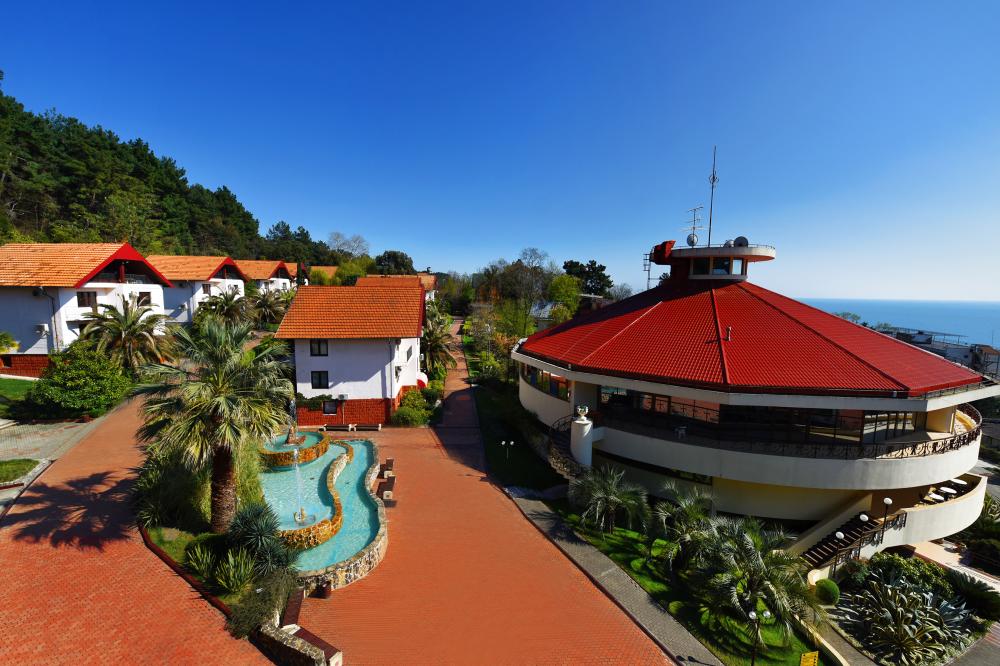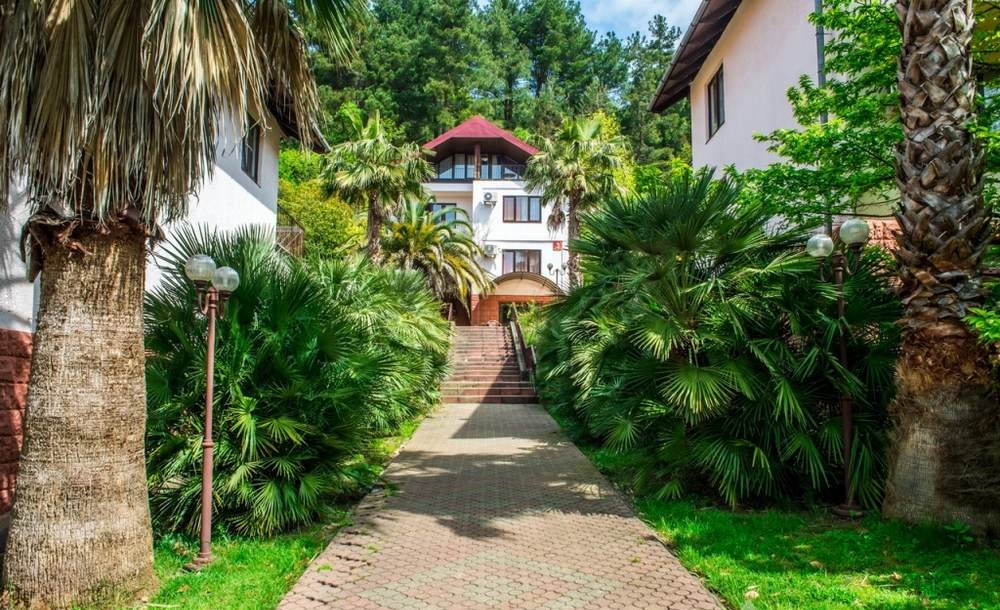 Самолетом до аэропорта Адлер, далее на автобусе до центрального автовокзала г. Сочи, далее маршрутным автобусом №77, 76 или 75 до ост. «Пансионат «Лучезарный».