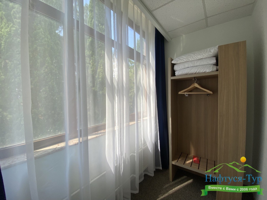 вешалка, зеркало, кровати односпальные, прикроватная тумбочка, шкаф