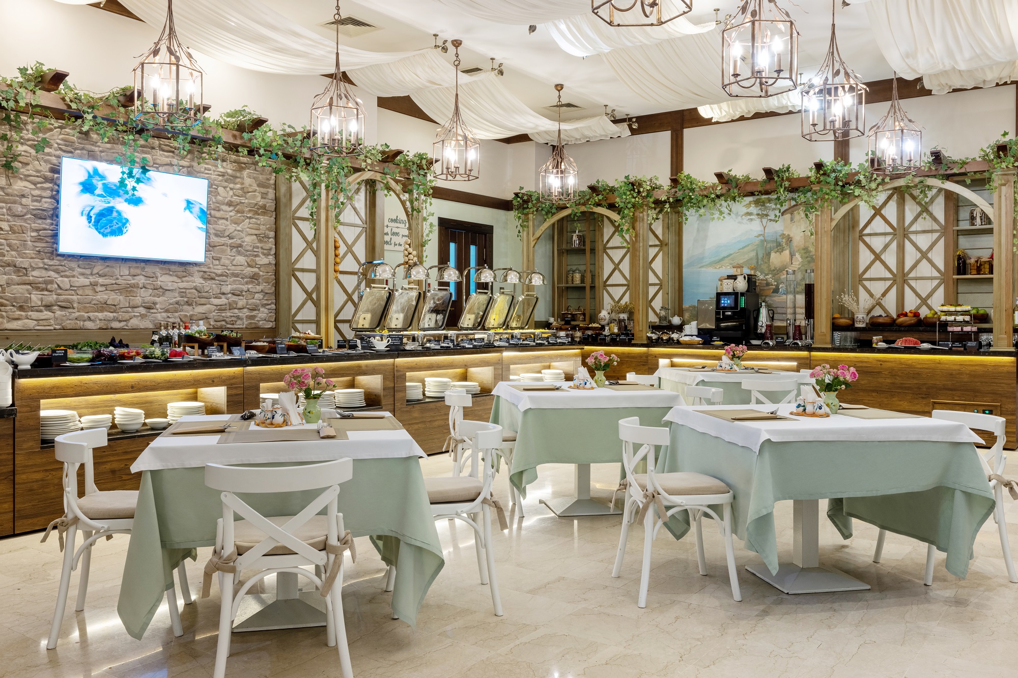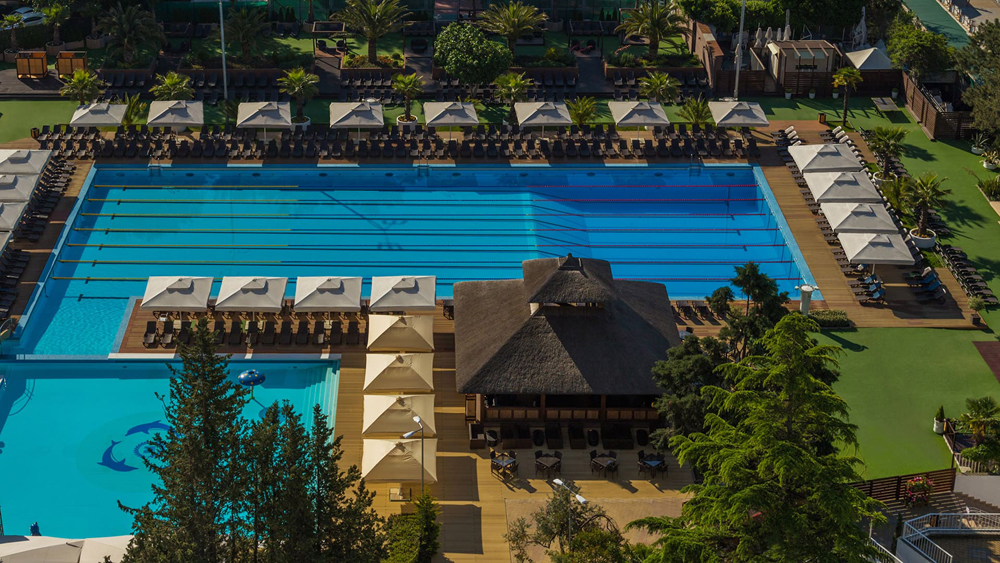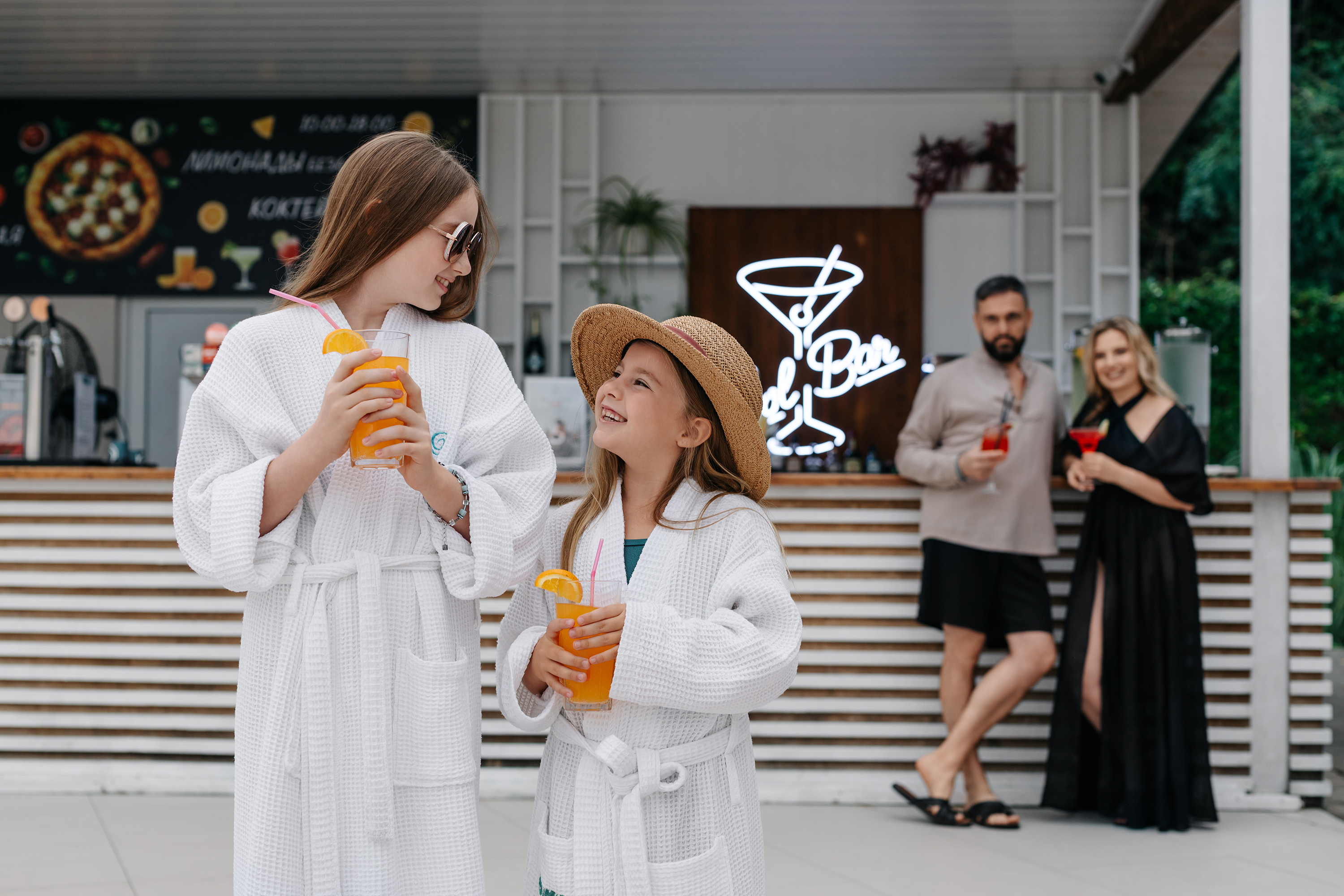 А также – ресторан и бар, конференц-зал и переговорная, прокат велосипедов и спортивного оборудования, охраняемая парковка, спа-центр с аква-зоной и аттракционами, термальным комплексом, крытым и открытым бассейнами и тренажёрным залом.