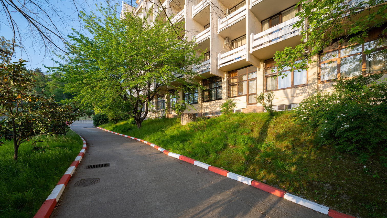 Сочи Управления делами Президента РФ санаторий - расположение: Первая линия у моря (50 м до пляжа от корп Приморский), 500 м до парка "Ривьера", 35 км до аэропорта Адлера.