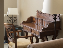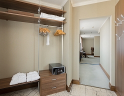 гардеробная, кресла, кровати односпальные, прикроватные тумбочки, стол, столик кофейный, столик туалетный, стул, шкаф