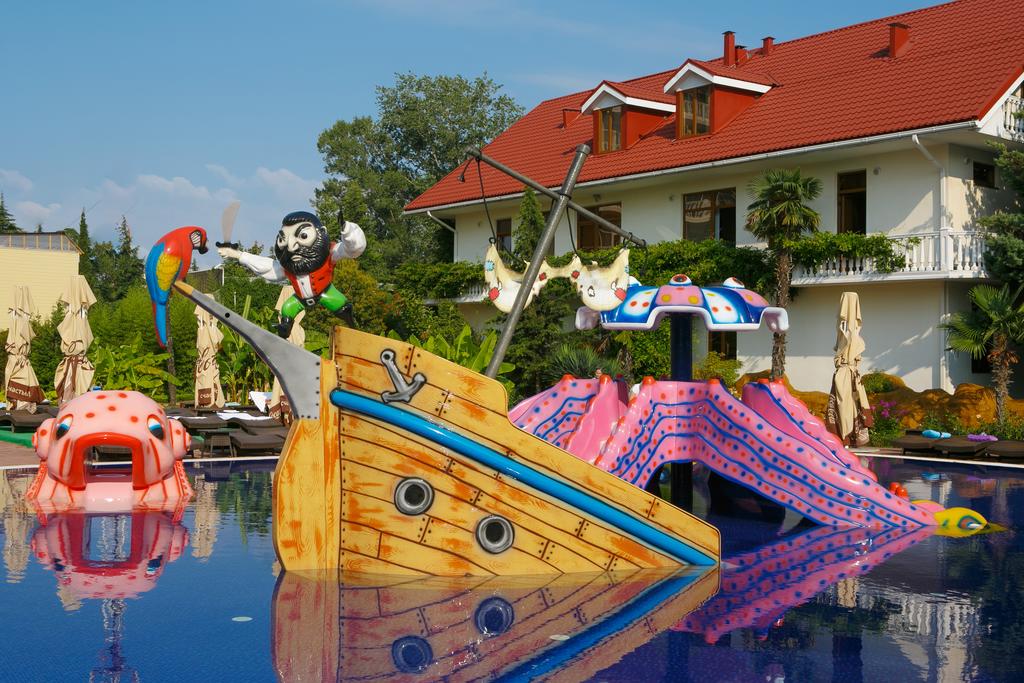 На территории отеля есть открытый бассейн с прекрасным видом на горы и море, а также детский бассейн. В отеле также есть теннисный корт, фитнес-зал и различные виды развлечений.