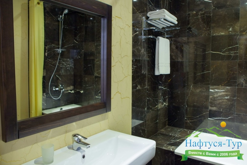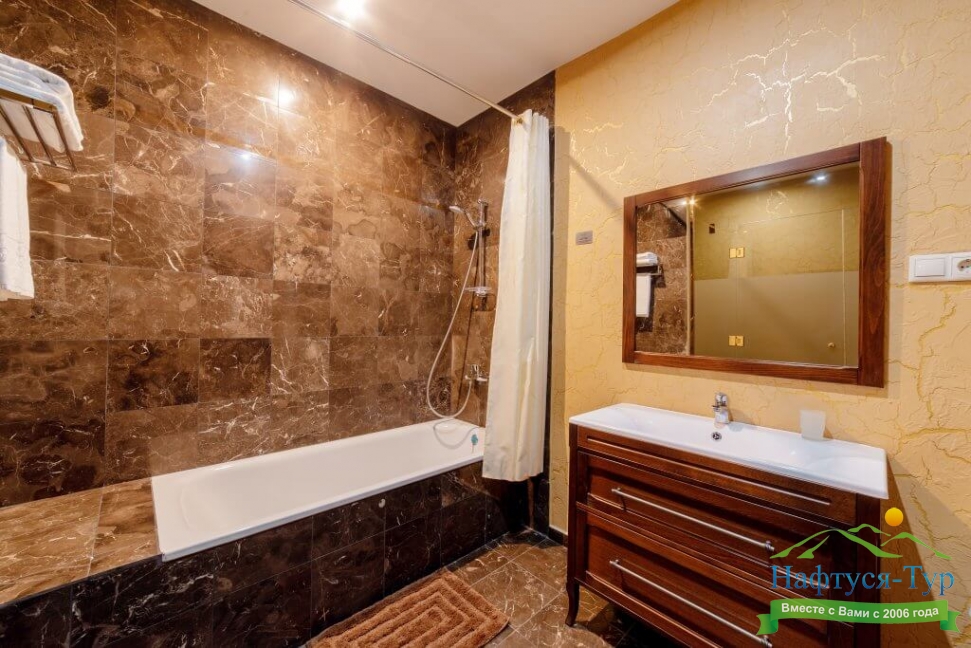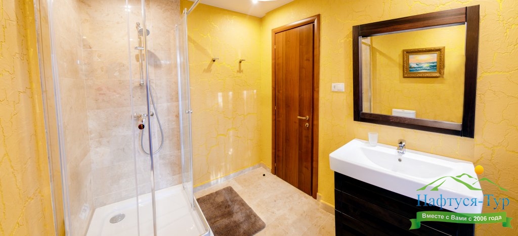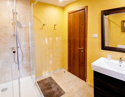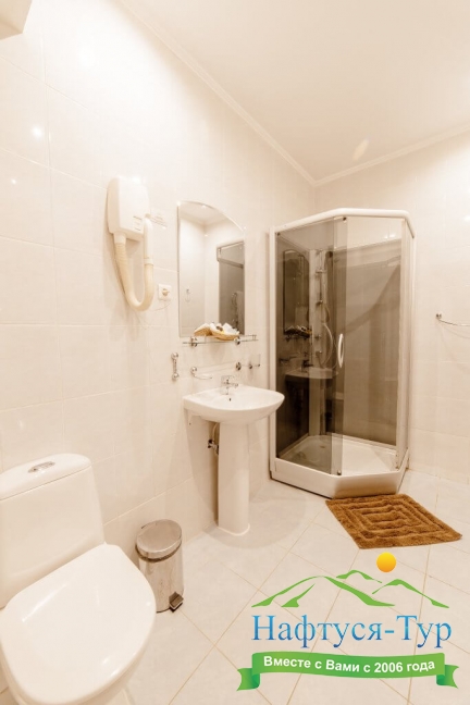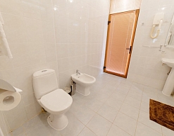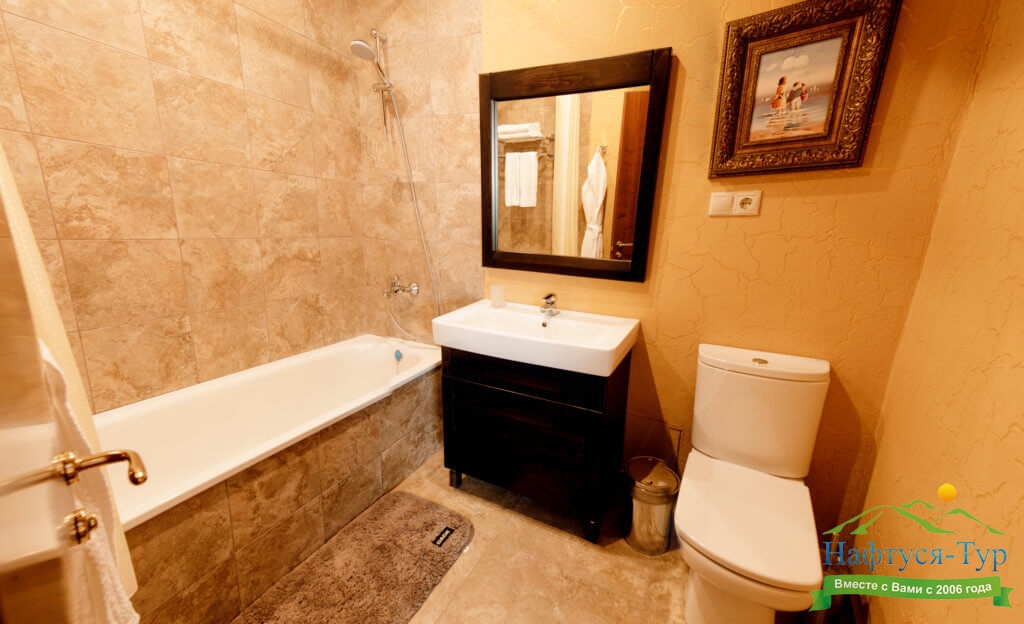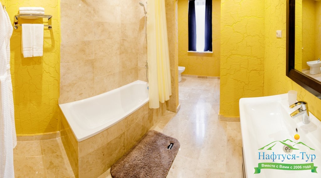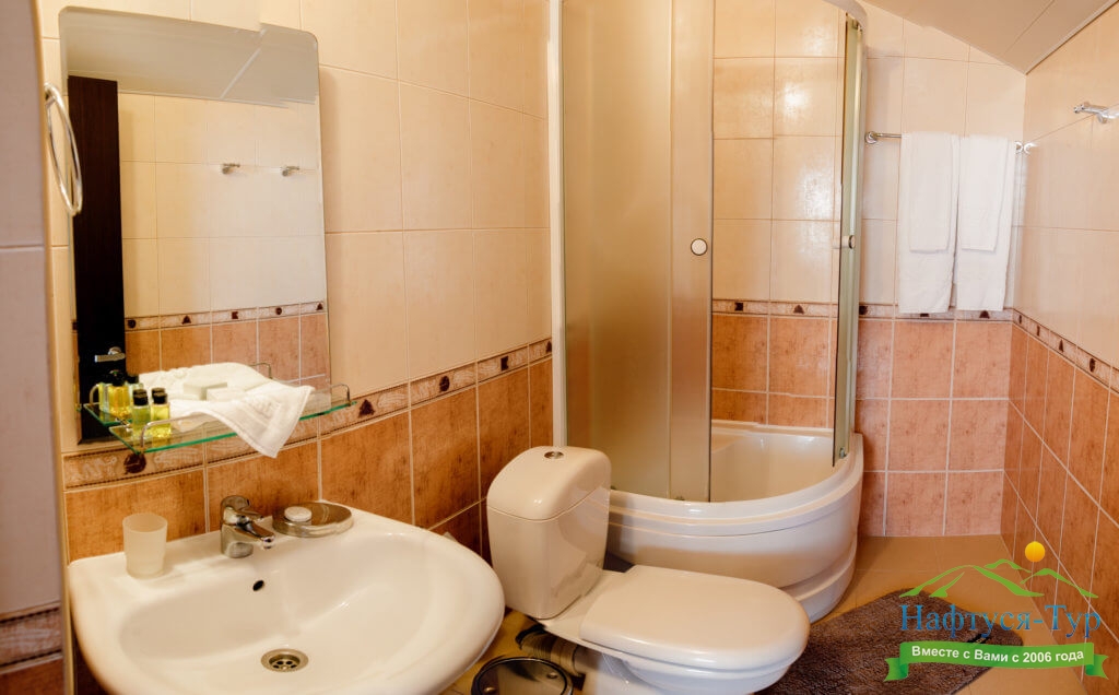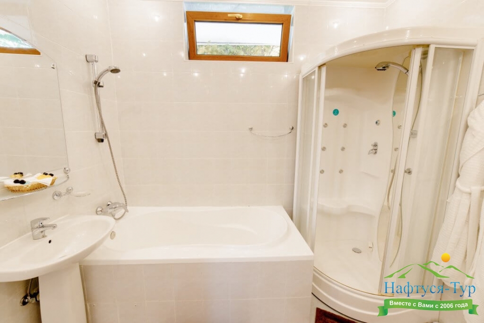 2 санузла, 3 санузла, с ванной, с душем, тапочки, туалетные принадлежности, фен, халат