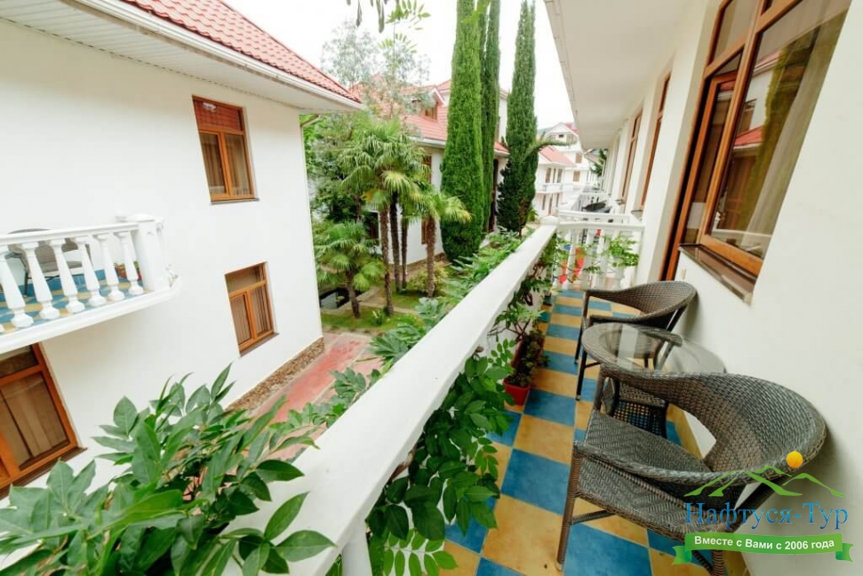 Расположение: Первая линия у моря (30 м до пляжа), 73 км до центра Сочи, 100 км до аэропорта Адлер