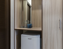 вешалка, кровати односпальные /одна двуспальная кровать, прикроватные тумбочки, стол, стул, шкаф