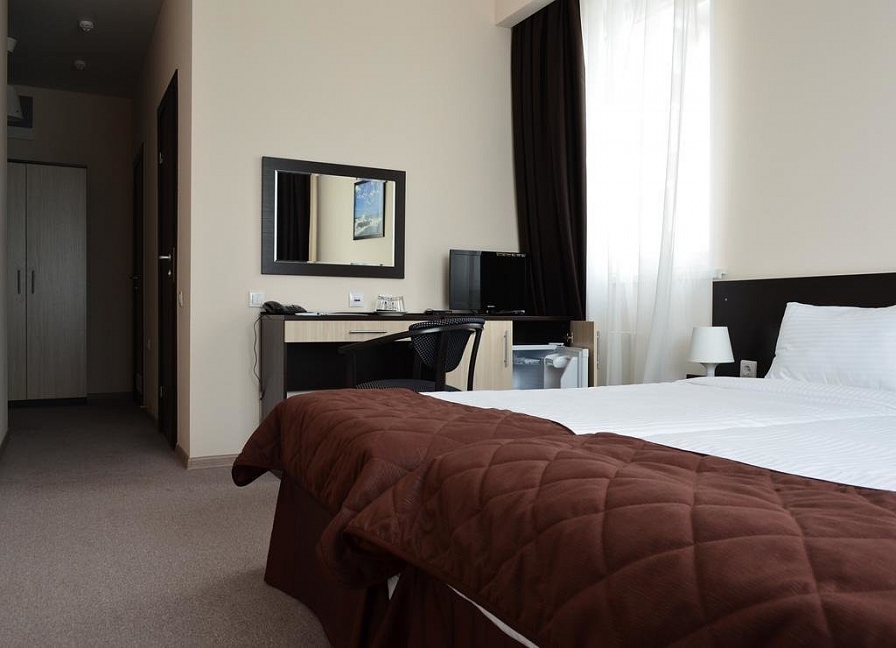 Отдалённость от моря существенная при хорошем движении 20-25 мин по солнцепёку. Номер предоставили угловой без балкона-по типу "последний". Две торцевые стены-накалялись от солнца так, что войти можно только бегом до кондиционера. Слышимость феноменальная, хорошо что соседи заехали в последнюю ночь иначе бы отдых был испорчен окончательно .Сами не поедем и другим не советуем.
