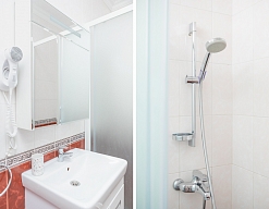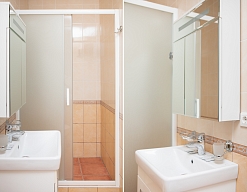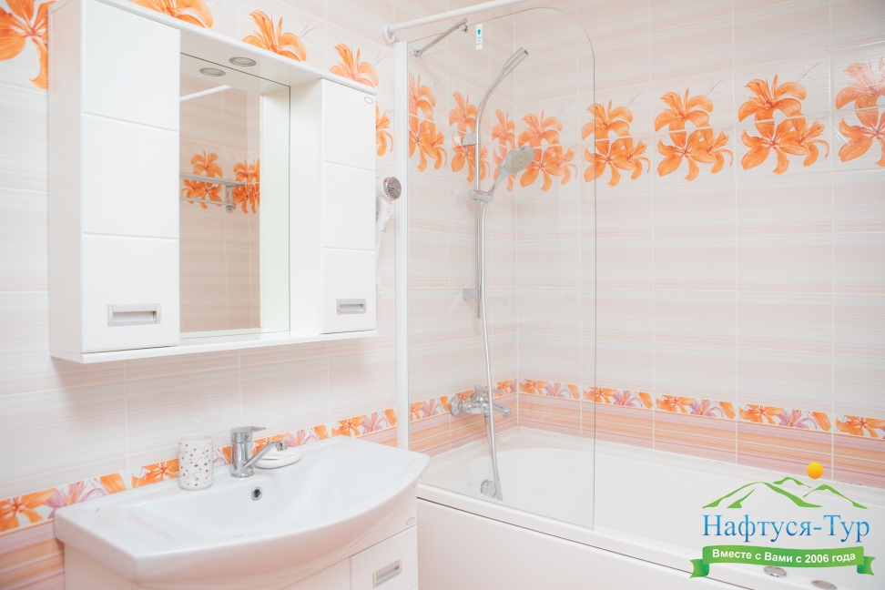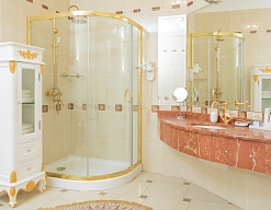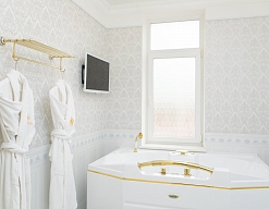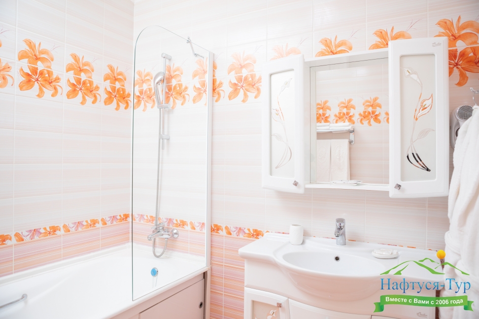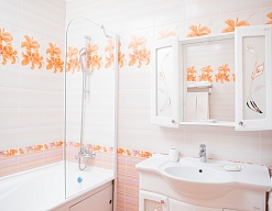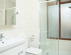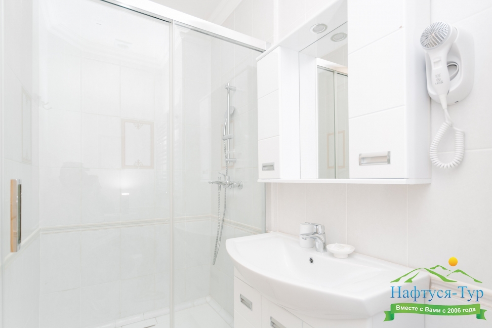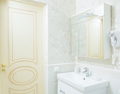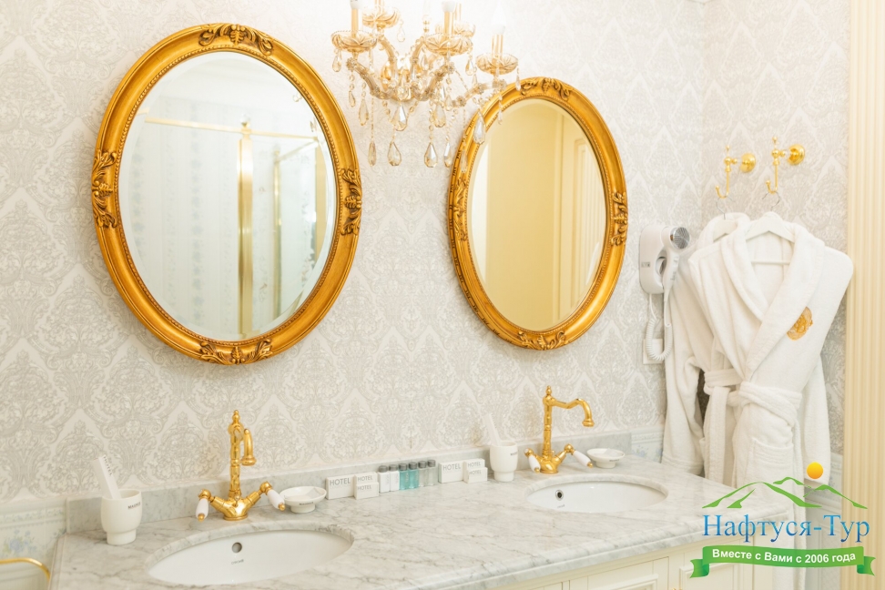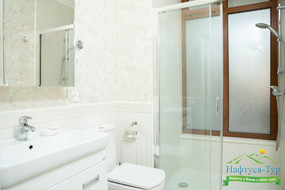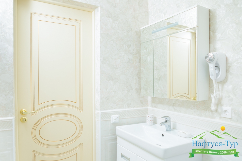 биде, с ванной, с джакузи, с душевой кабиной, тапочки, туалетные принадлежности, фен