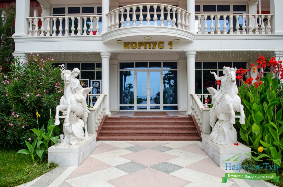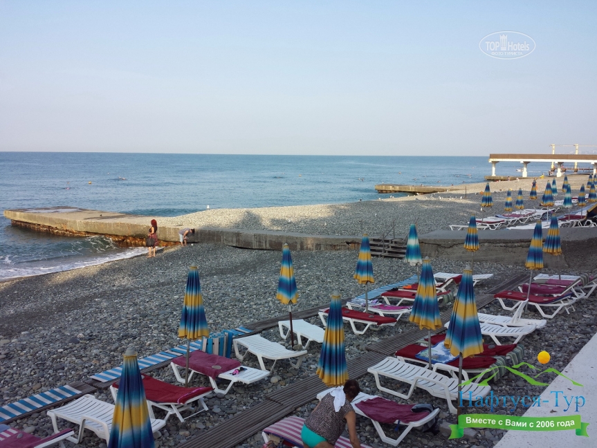 Расположение: Первая линия у моря (50 м до пляжа от корпуса 2), 28 км до центра Сочи, 5 км до аэропорта Адлер