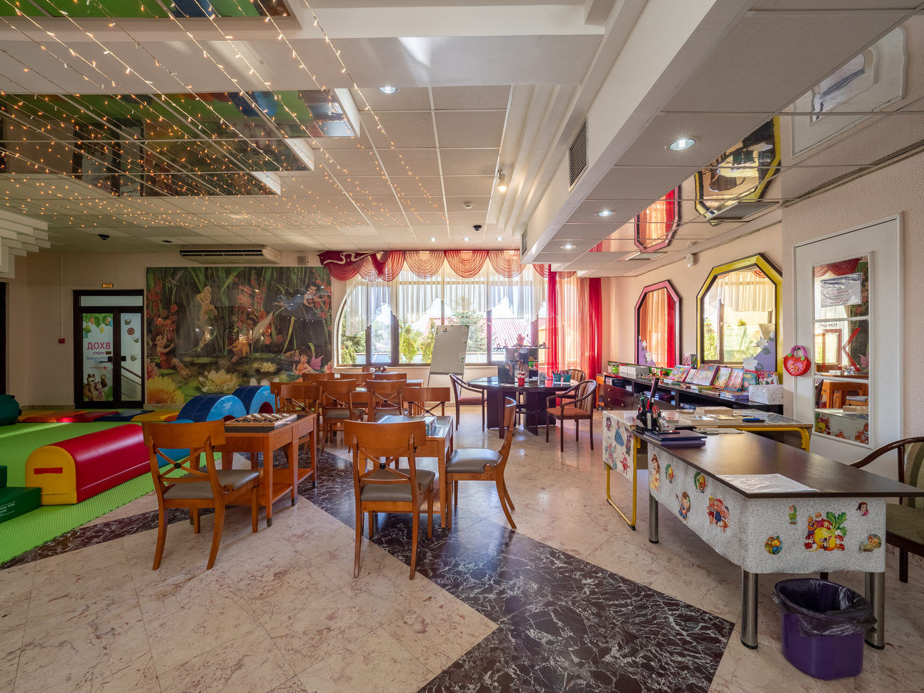 Для маленьких детей у нас есть детская комната с игрушками и книгами, где они смогут играть и общаться с другими детьми. А для подростков у нас есть специальная комната с видеоиграми, настольным футболом и другими развлечениями.