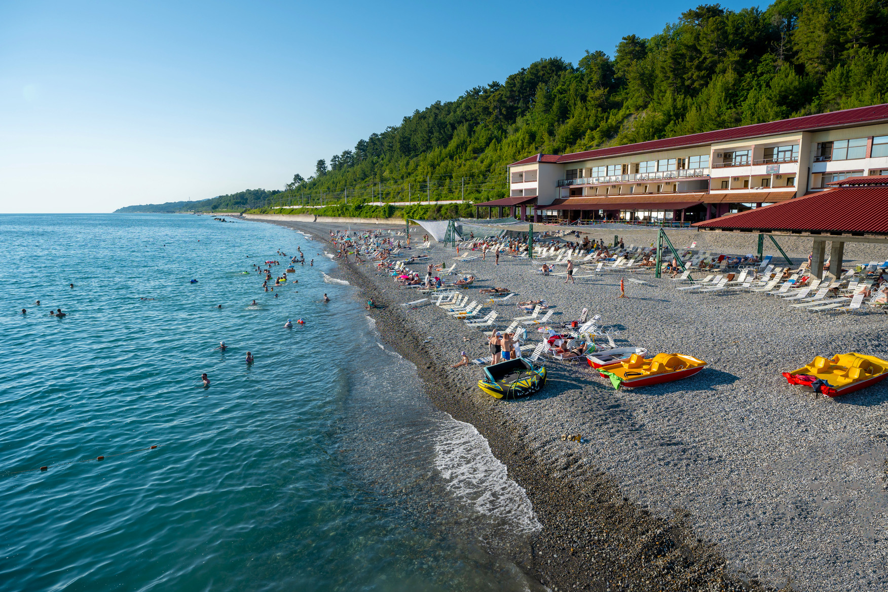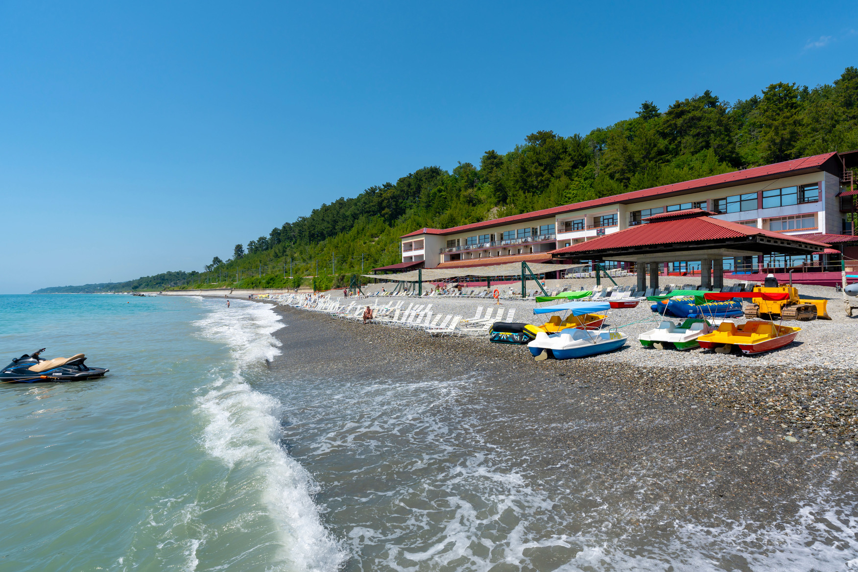 В санатории «Шексна» в Сочи вы сможете насладиться прекрасным пляжем на берегу Черного моря. Мы предоставляем своим гостям комфортабельные зоны для отдыха и загара, а также разнообразные водные развлечения, такие как катание на водных мотоциклах, катание на банане и другие.