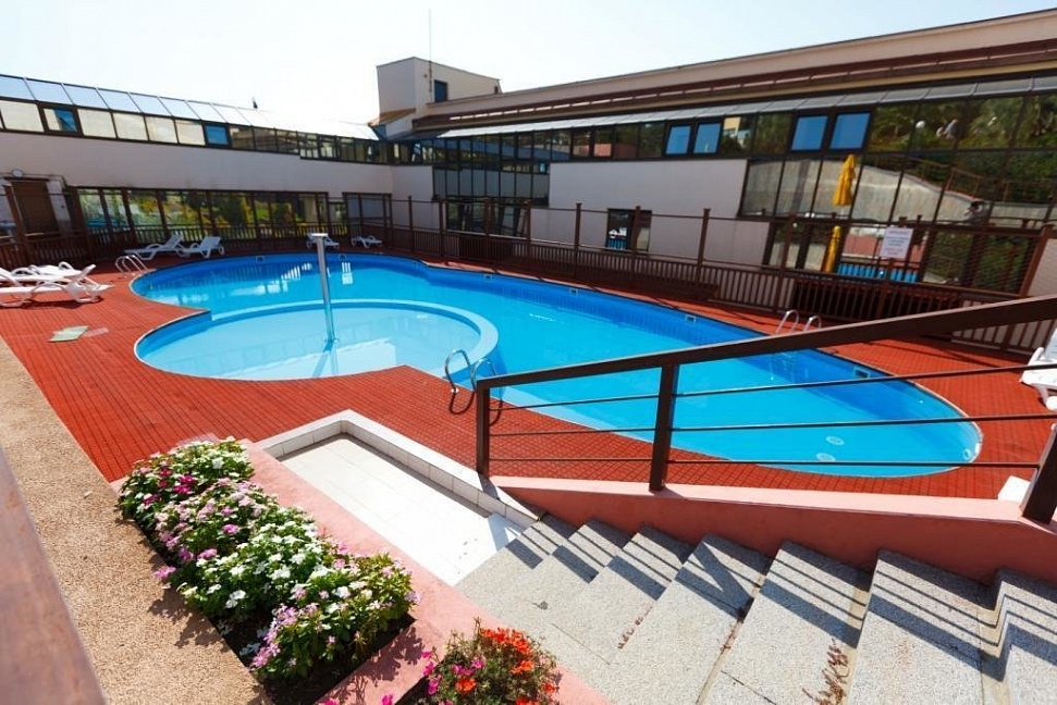 Открытый бассейн: площадь 167,5 м2,глубина 0,5 м — 1,75 м, без подогрева, период работы: с июня по сентябрь.