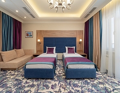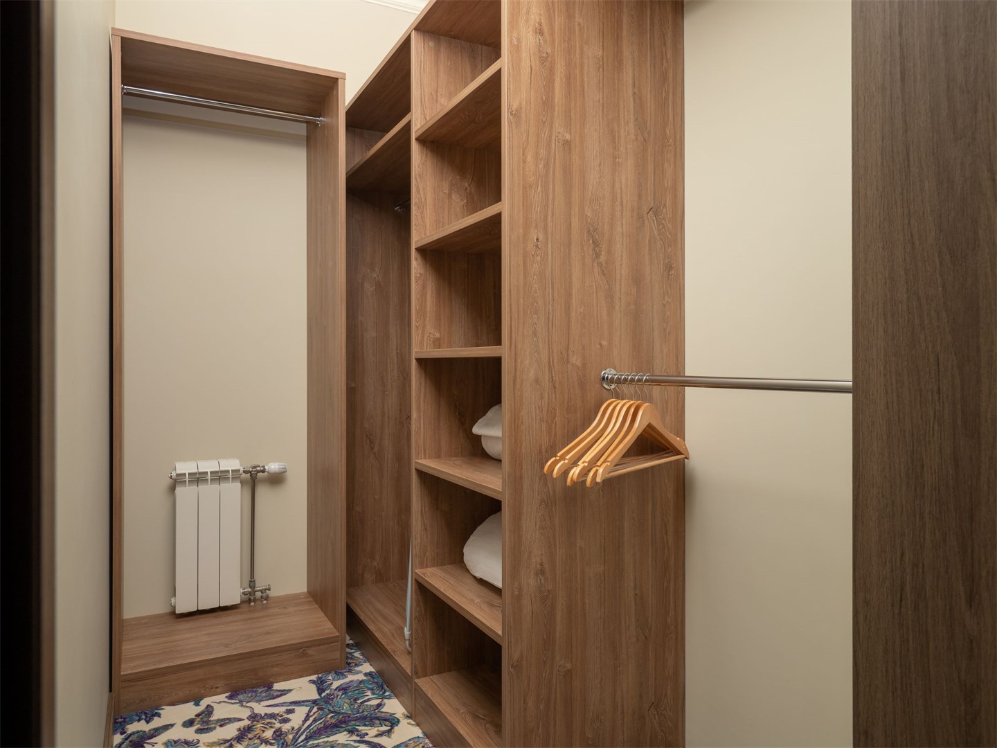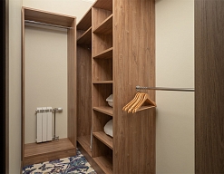 гардеробная, диван, еврораскладушка, зеркало, кровати односпальные /одна двуспальная кровать, прикроватные тумбочки, столик туалетный, стул, шкаф