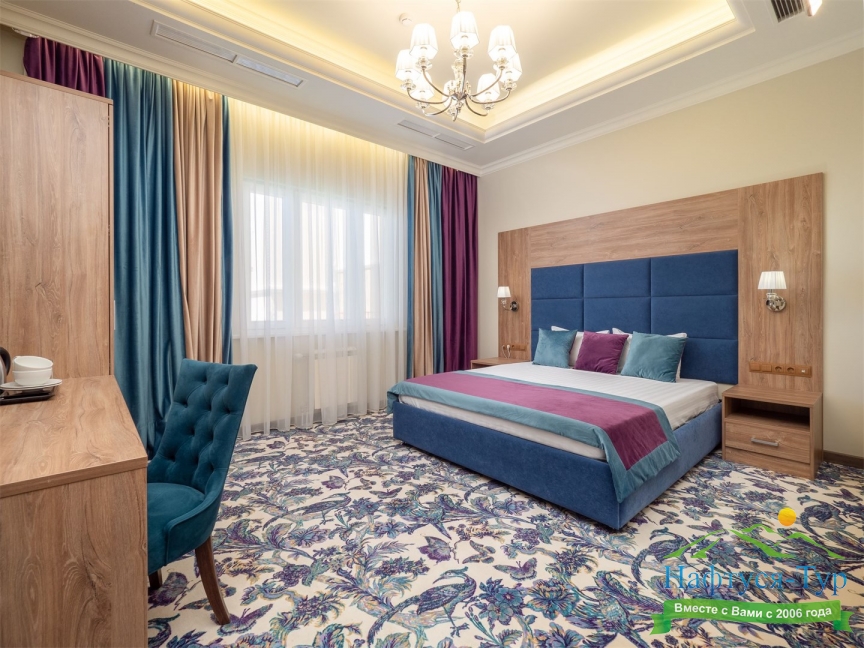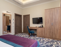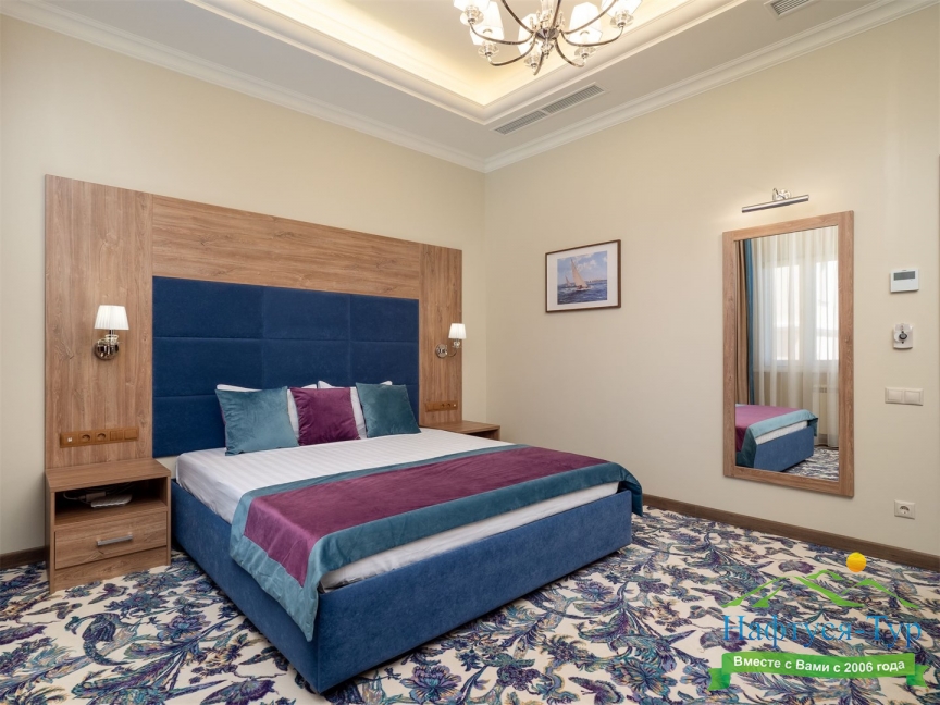 кровать двуспальная, прикроватные тумбочки, столик туалетный, стул, шкаф