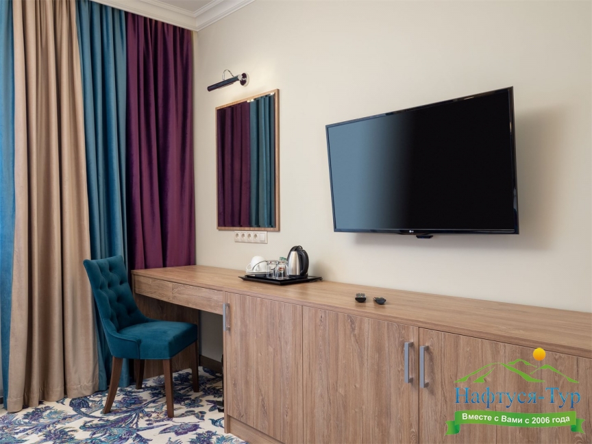 кондиционер, мини-холодильник, сейф, сушилка для белья, телевизор, телефон, чайная станция