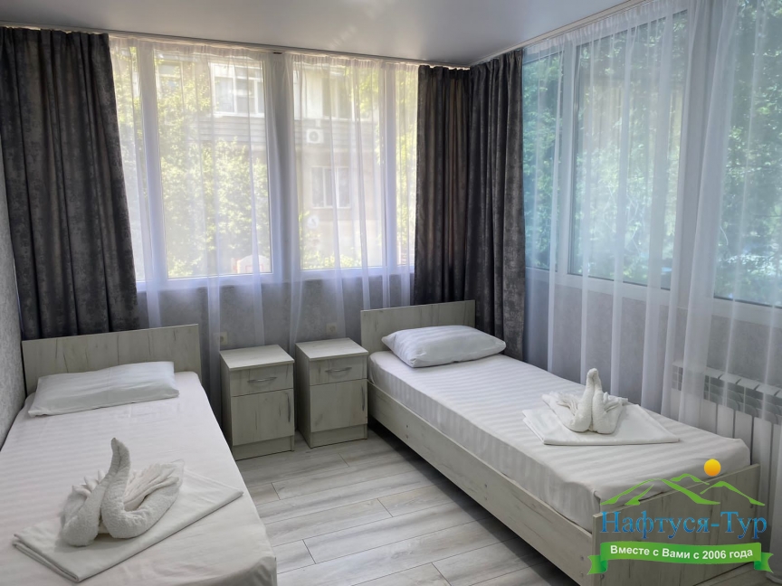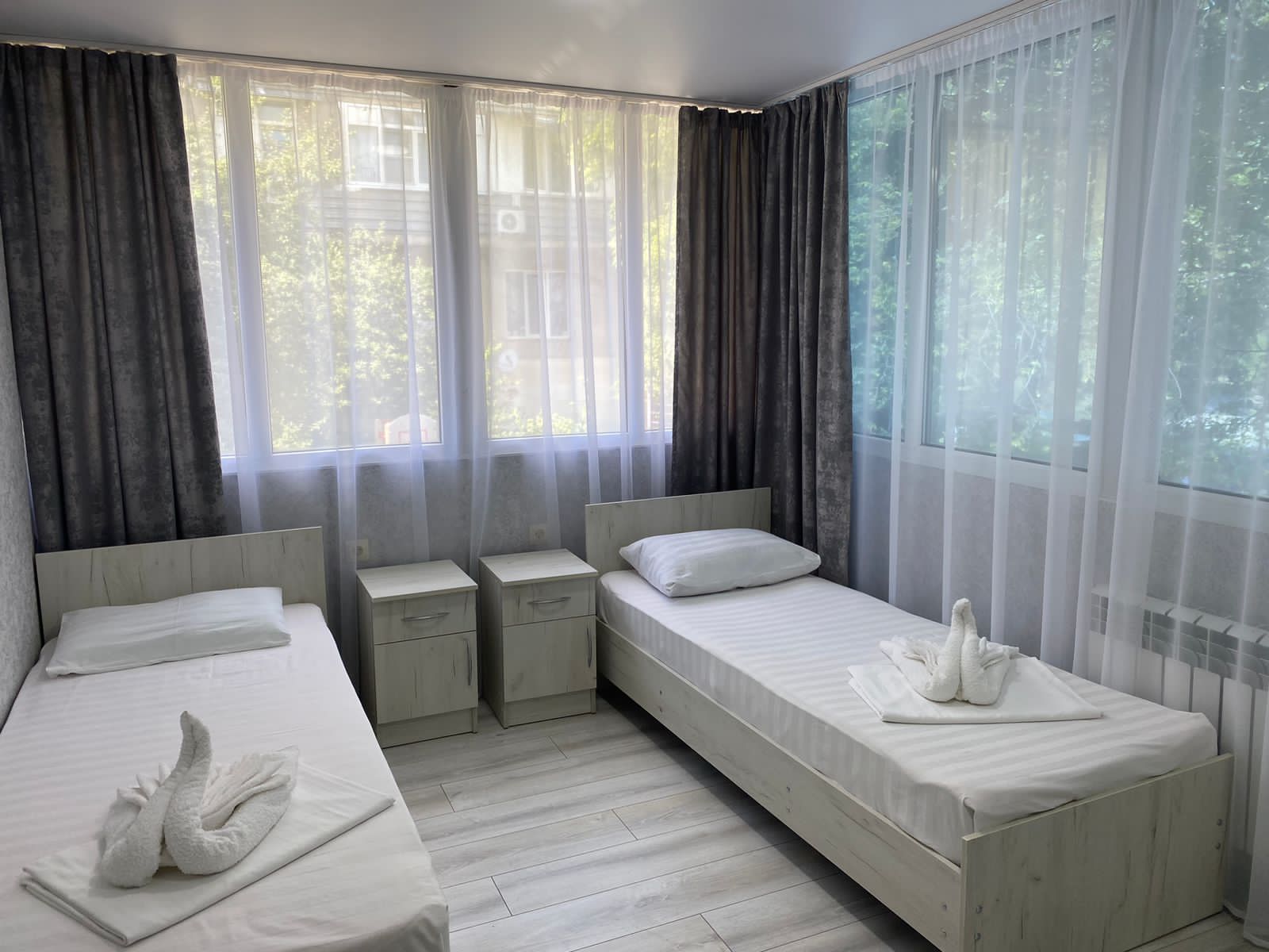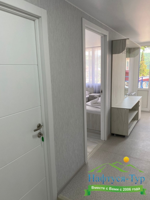 Расположение: 20 мин до пляжа, 500 м до центра, 90 км до аэропорта Адлер