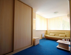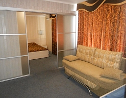 диван раскладной, кровать двуспальная, прикроватные тумбочки, шкаф