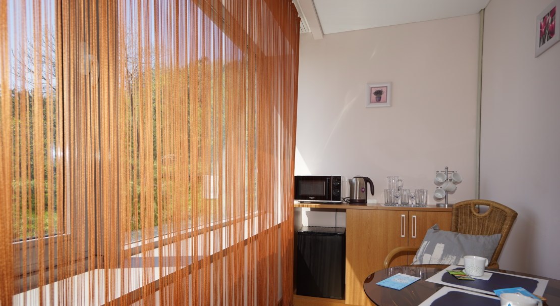 кофемашина, микроволновая печь, мини-холодильник, набор посуды, сейф, система общего кондиционирования, телевизор, чайный набор посуды, электрочайник
