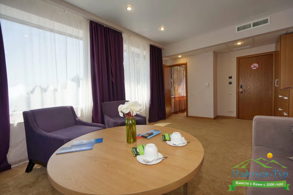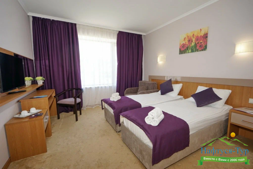 Проживание, питание полный пансион (завтрак "шведский стол", обед и ужин (тип питания может быть изменен в зависимости от загрузки отеля)