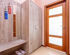 вешалка, диван раскладной, зеркало, ковровое покрытие, кровать двуспальная, прикроватные тумбочки, стол, стулья, шкаф