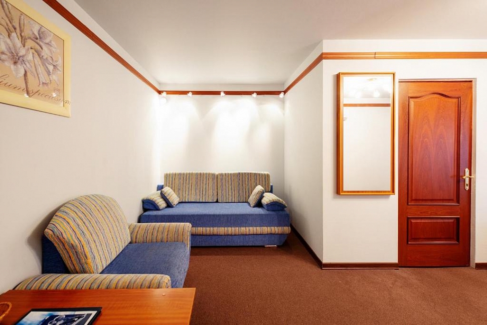 мини-бар,шкаф,телефон,журнальный стол,раскладной диван