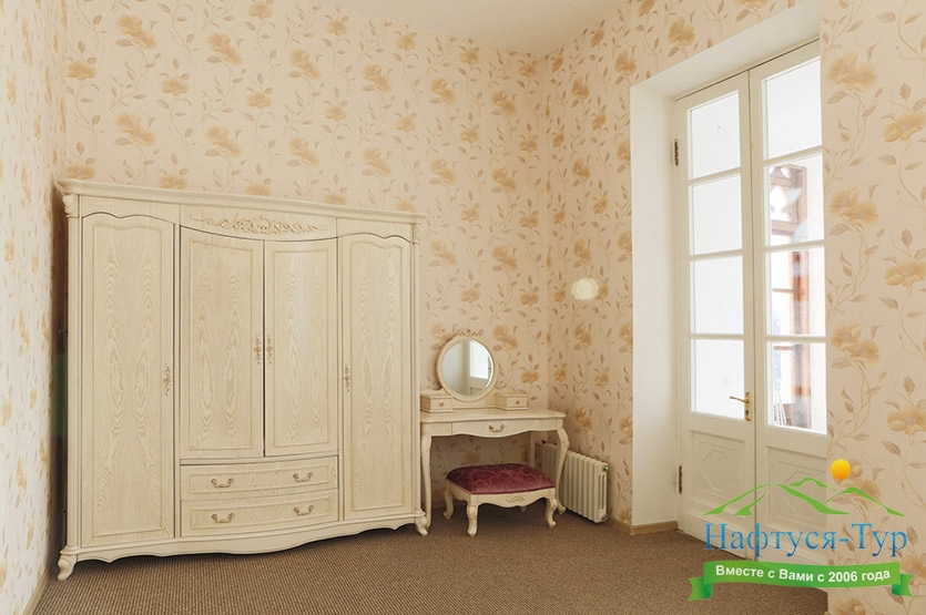вешалка, кресло, кровати односпальные, прикроватные тумбочки, стол, стулья, шкаф