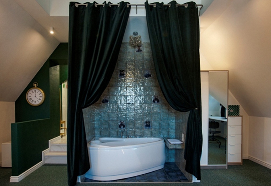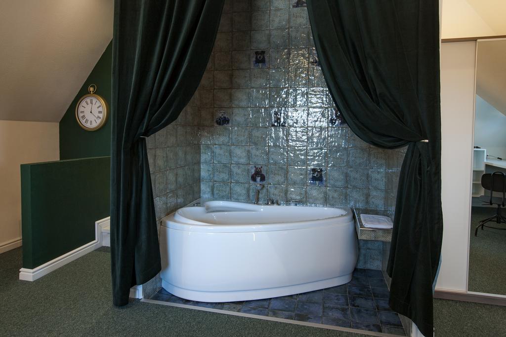 с ванной или душевой кабиной, с джакузи, туалетные принадлежности, фен