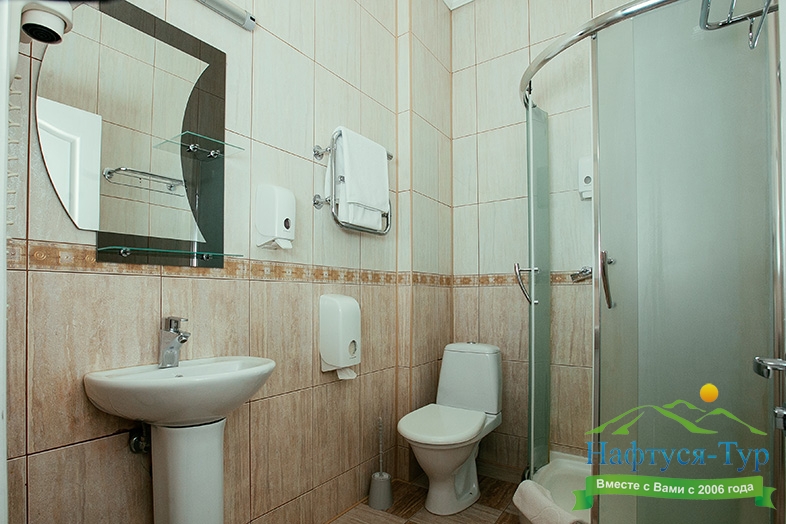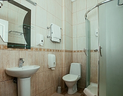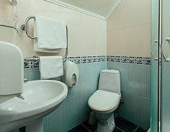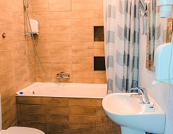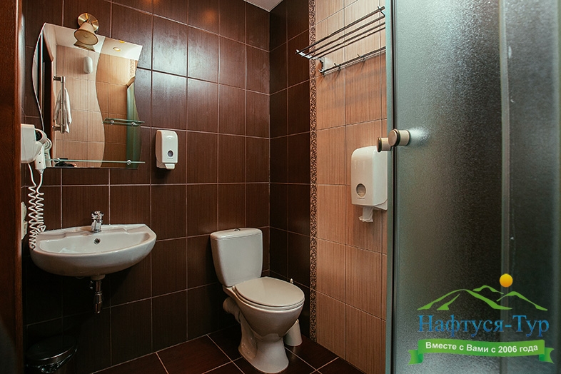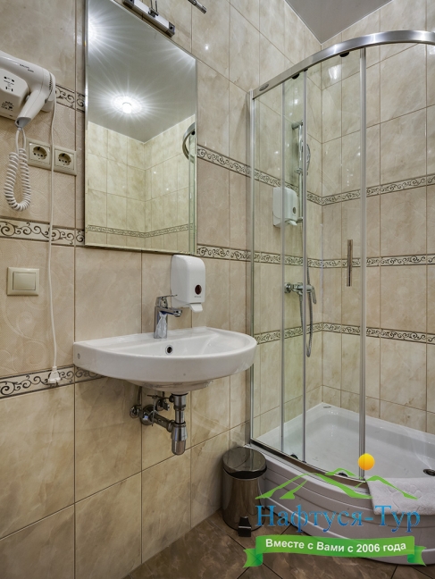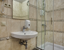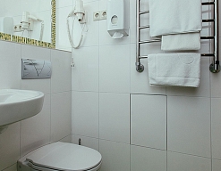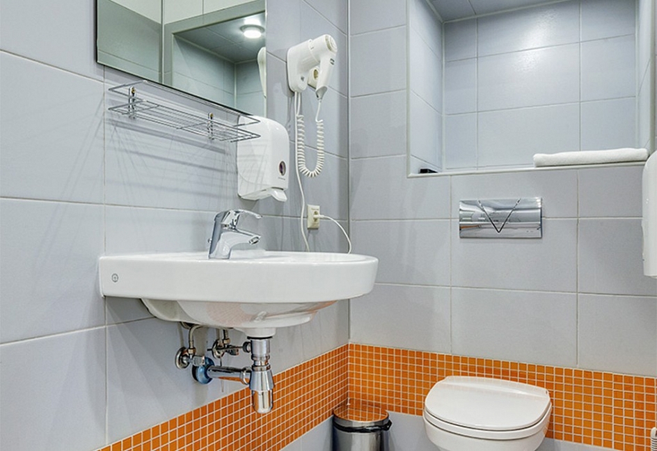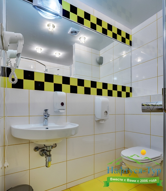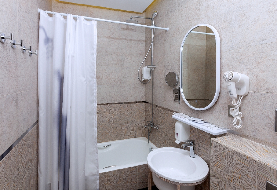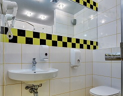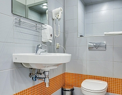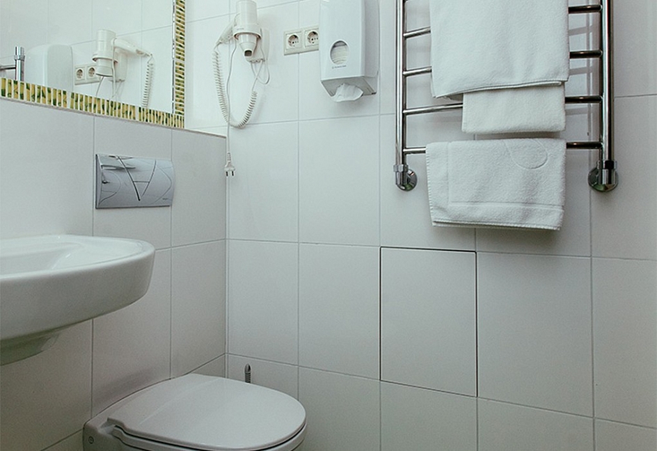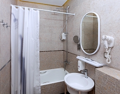 с ванной или душевой кабиной, туалетные принадлежности, фен