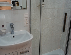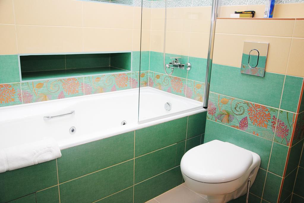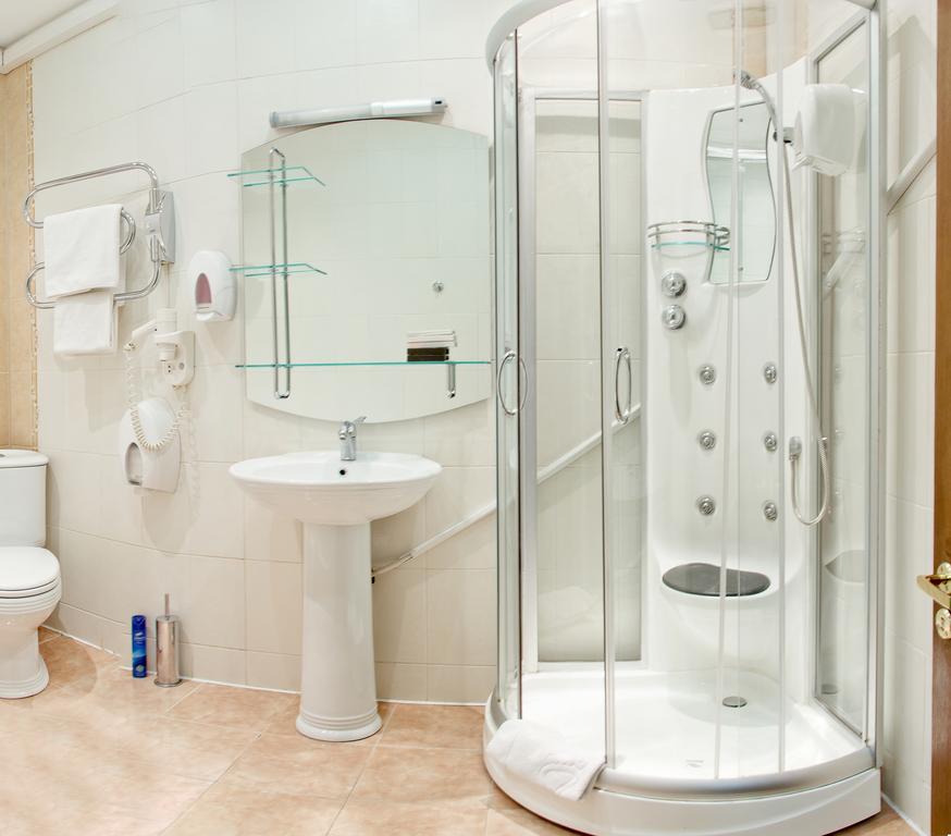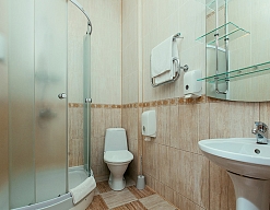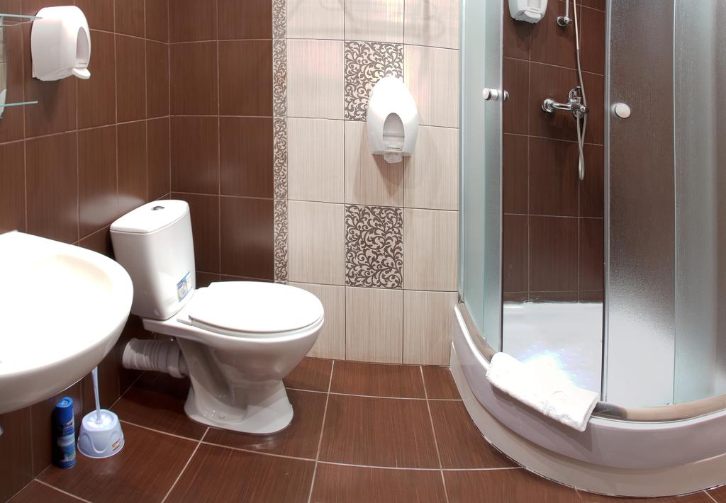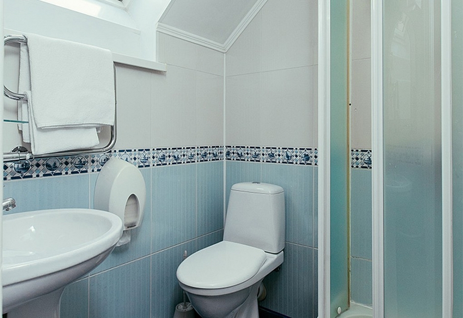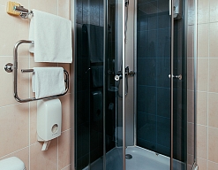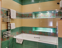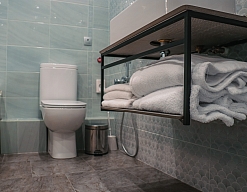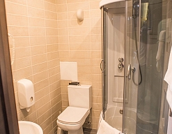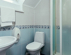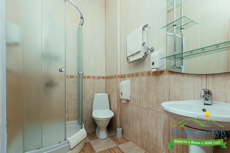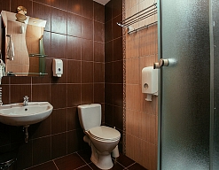с ванной или душевой кабиной, туалетные принадлежности, фен