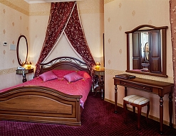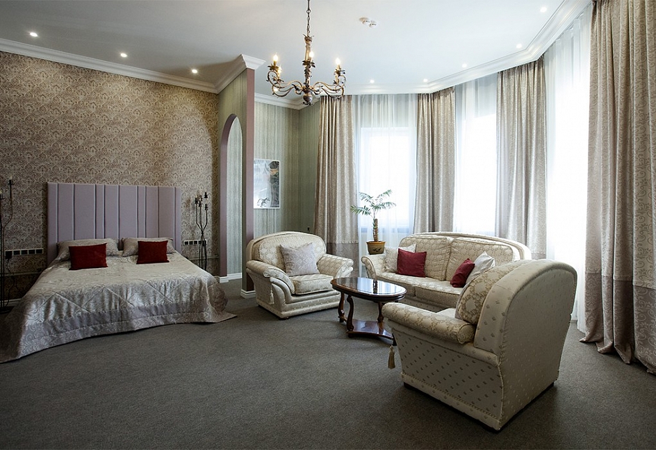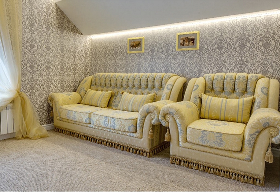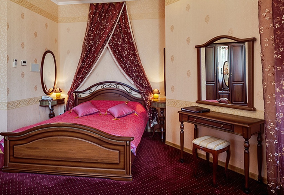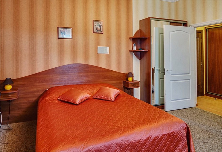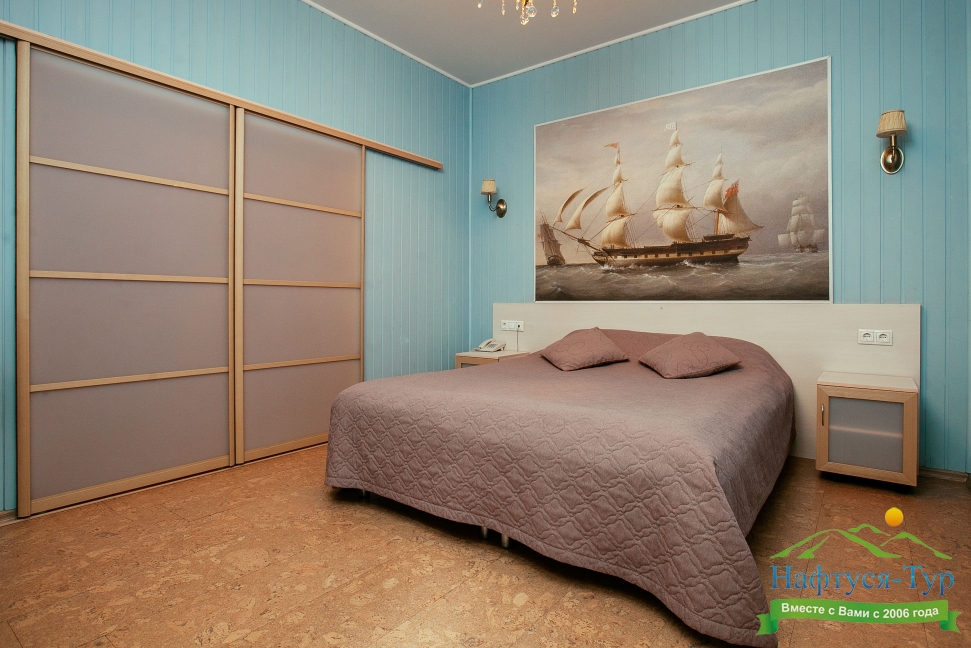 диван, зеркало, кровати односпальные /одна двуспальная кровать, прикроватные тумбочки, стол, стулья, тумба, шкаф