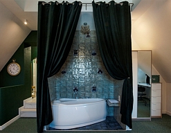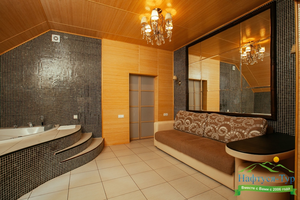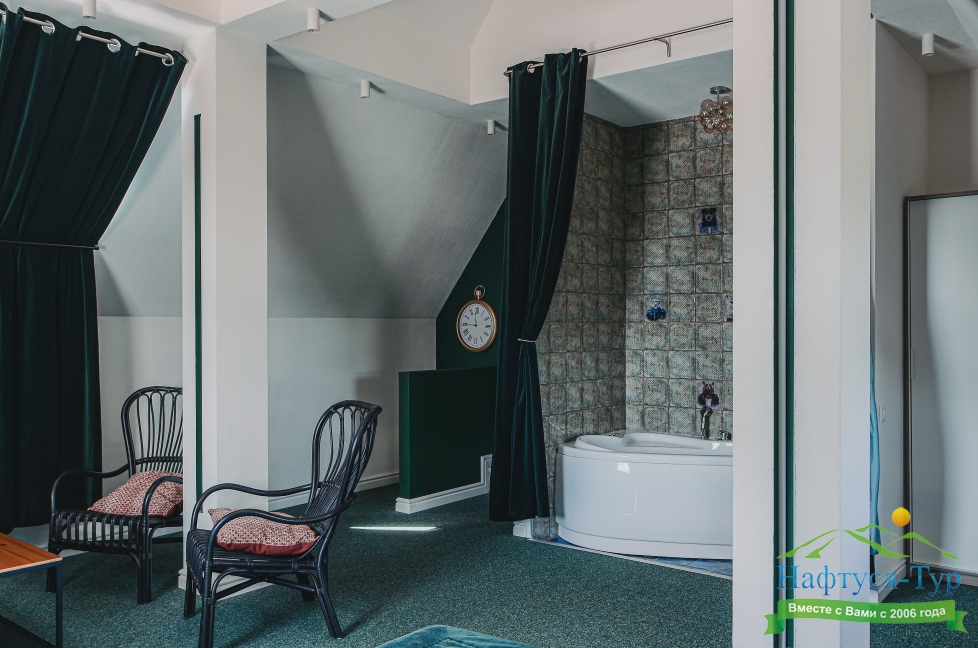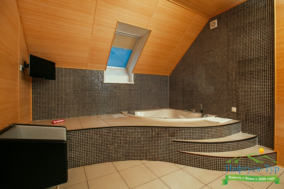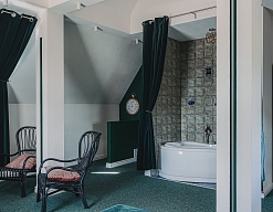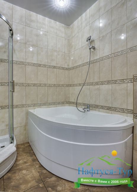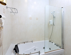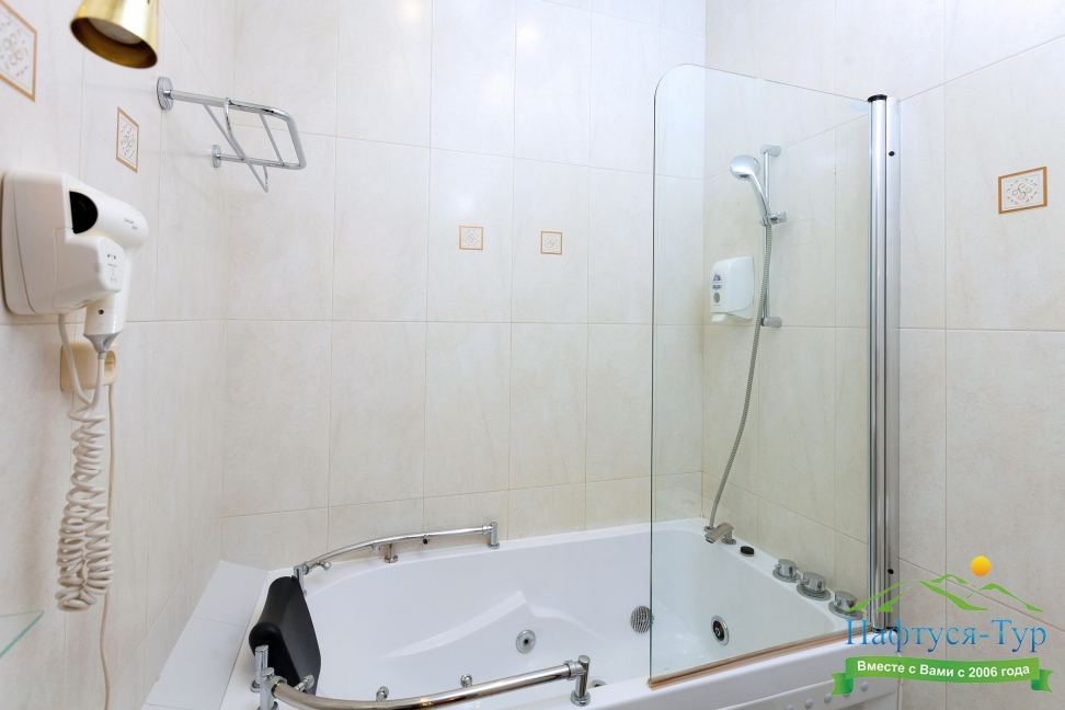 с джакузи, с душевой кабиной, тапочки, туалетные принадлежности, фен, халат