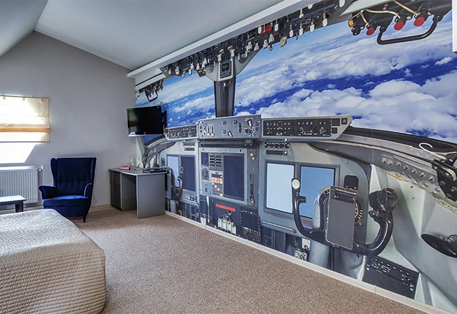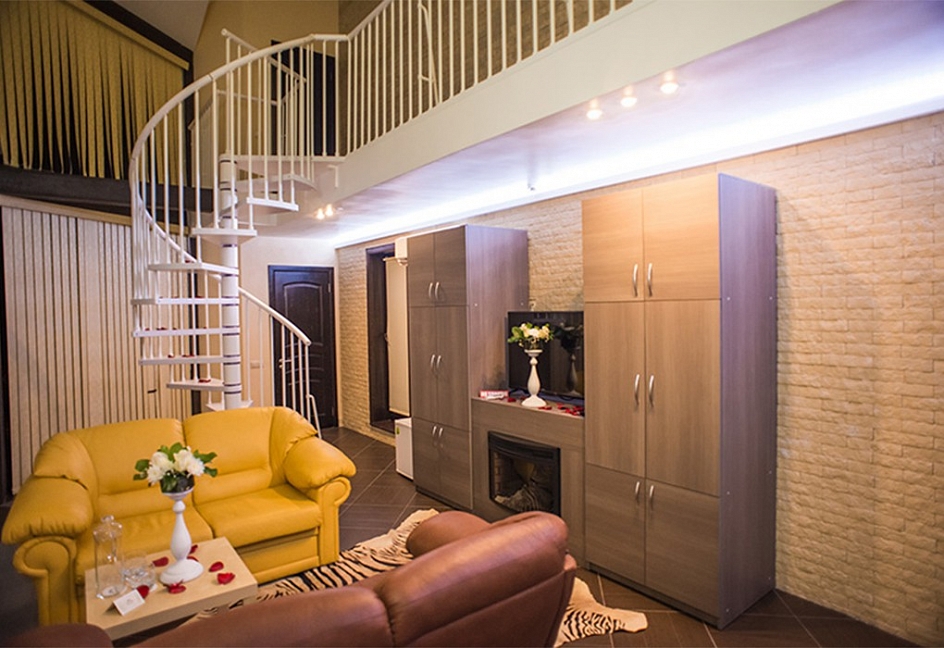 камин, кондиционер, мини-холодильник, набор посуды, телевизор, телефон