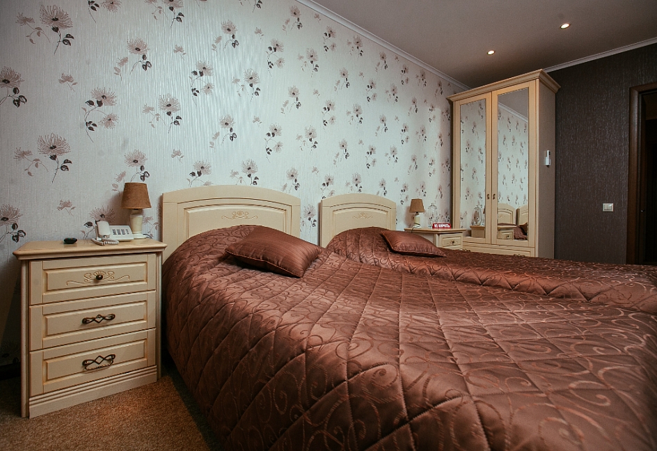 кровати односпальные /одна двуспальная кровать, прикроватные тумбочки, стол, стулья, тумба, шкаф
