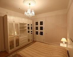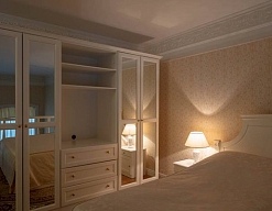 вешалка, диван, зеркало, кровать двуспальная, набор мягкой мебели, прикроватные тумбочки, стол, стулья, шкаф