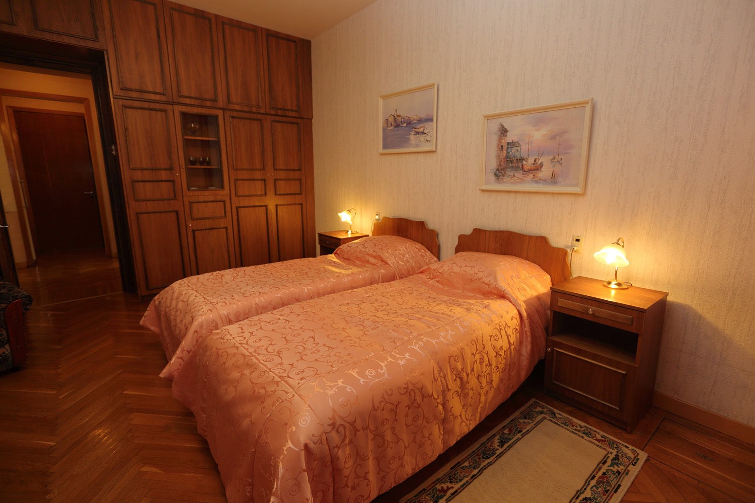 вешалка, зеркало, кровати односпальные /одна двуспальная кровать, прикроватные тумбочки, столик журнальный, стулья, тумба под телевизор, шкаф встроенный