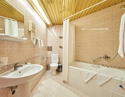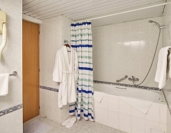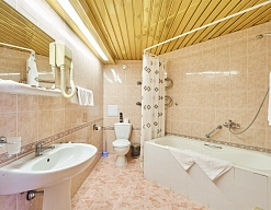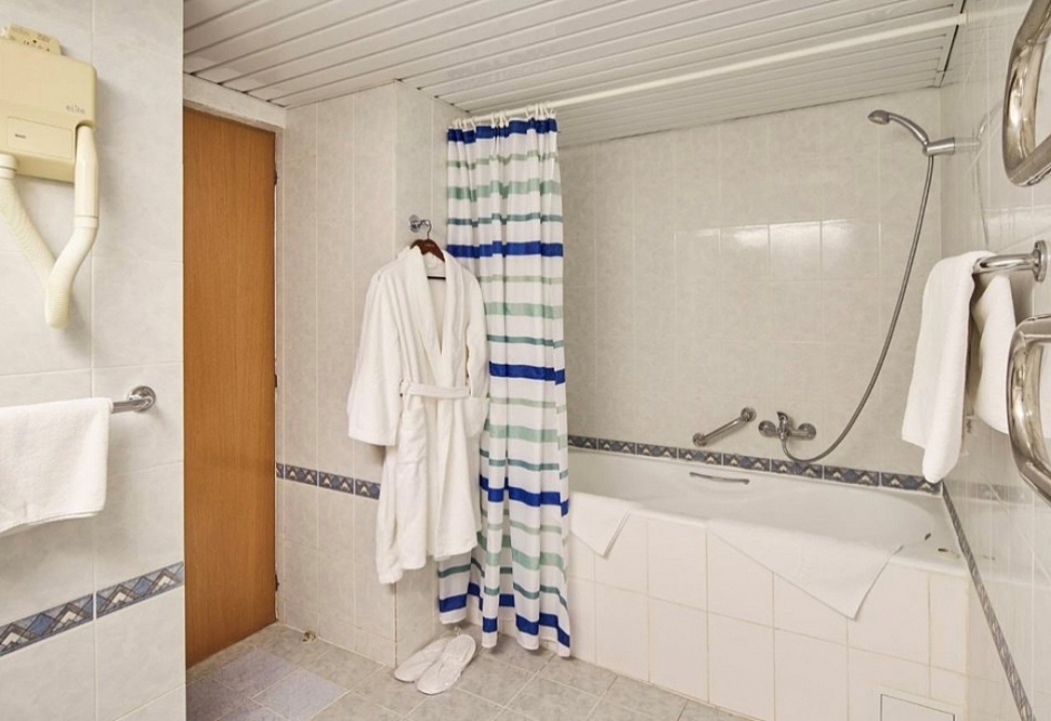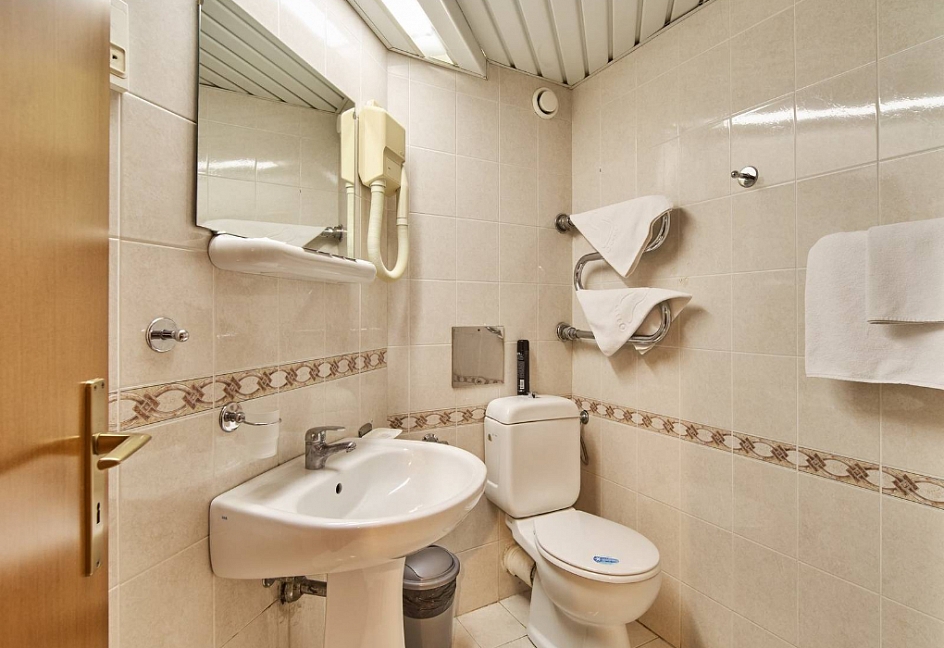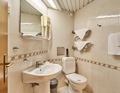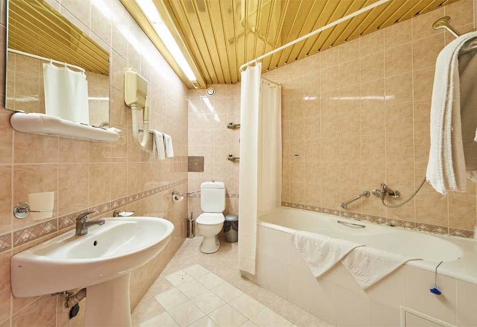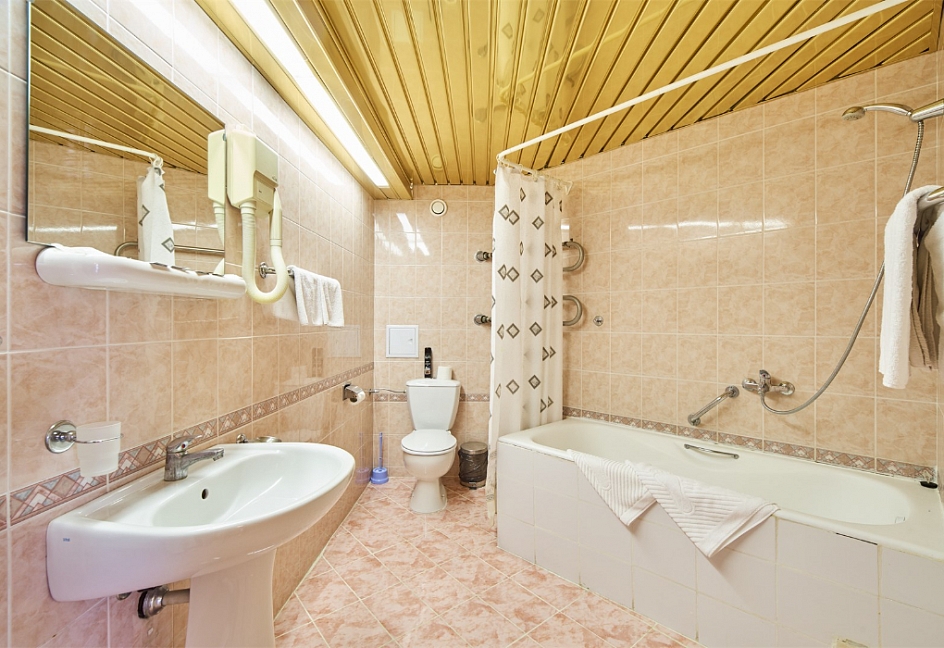 с душем или ванной, туалетные принадлежности, фен