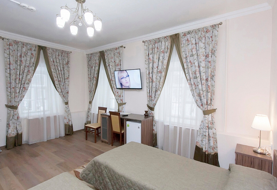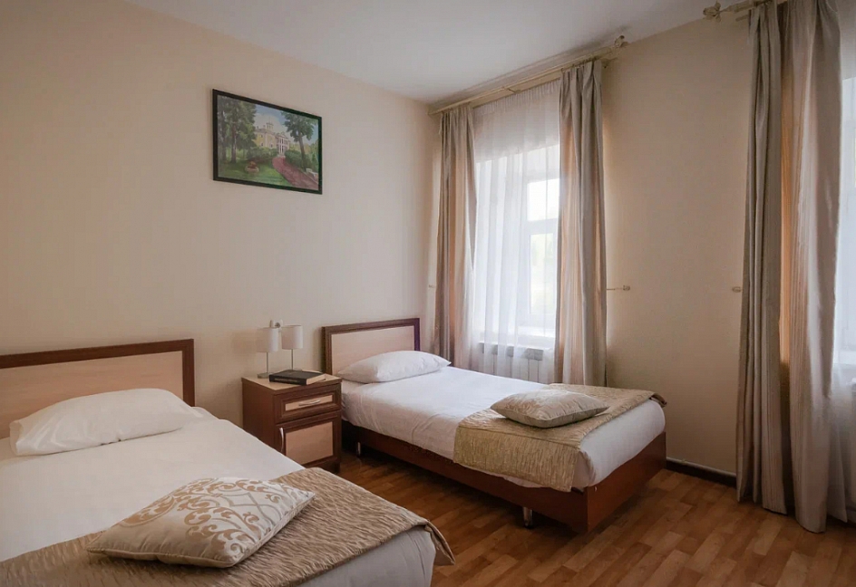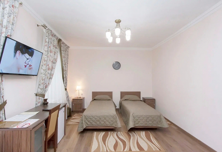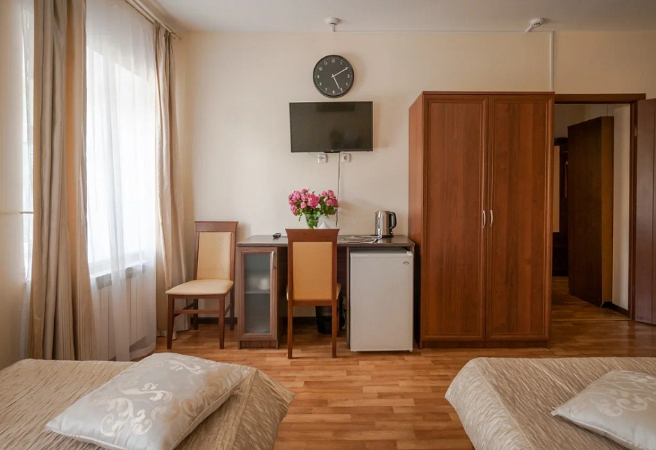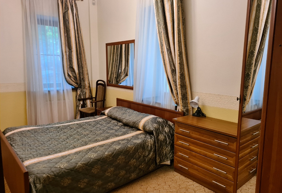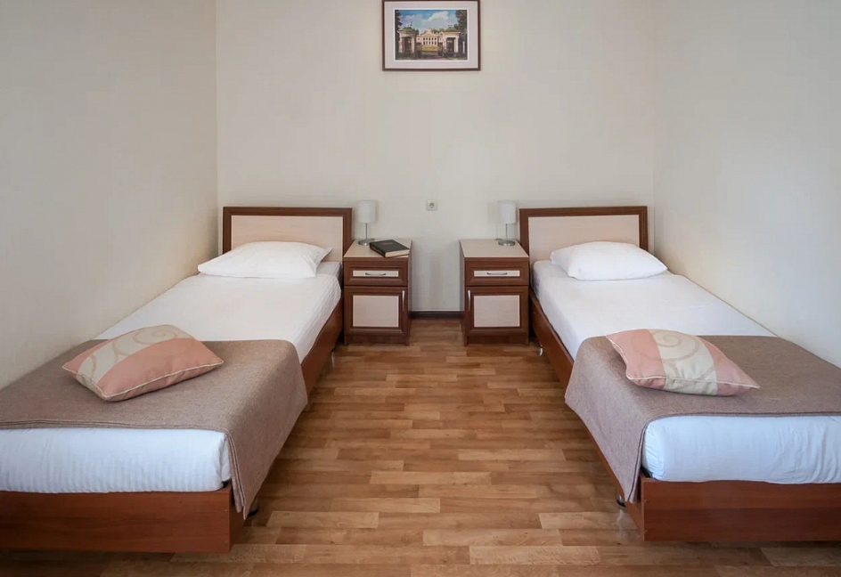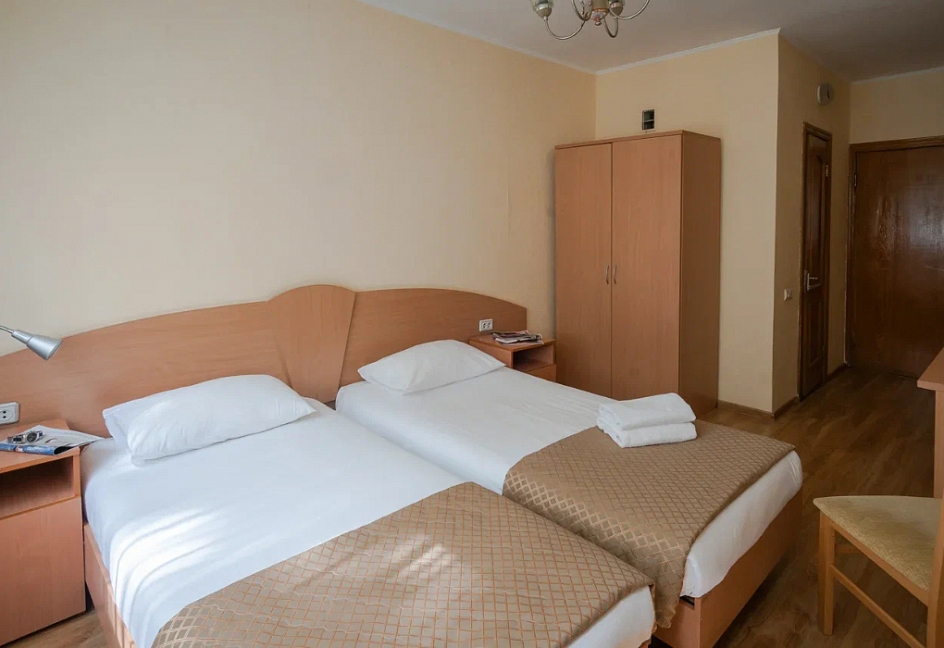 кровати односпальные /одна двуспальная кровать, прикроватные тумбочки, стол, стулья, шкаф