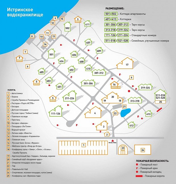 - расположился на берегу Истринского водохранилища