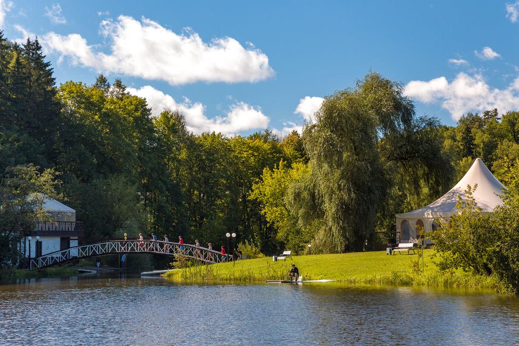 Просторная парковая территория, с шатрами и площадками для проведения массовых мероприятий и тимбилдингов. Развитая инфраструктура позволяет воплотить любые сценарии проведения мероприятий для любого количества участников.