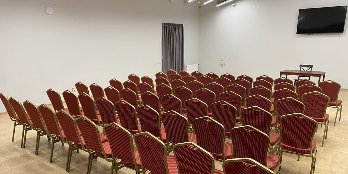 Для проведения корпоративных мероприятий в парк-отеле «Актер-Руза» подготовлен вместительный просторный конференц-зал «Сцена» площадью 120 кв.м. вместимостью до 100 чел.