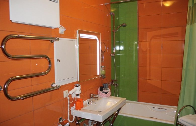 биде, с ванной, туалетные принадлежности, фен, халат