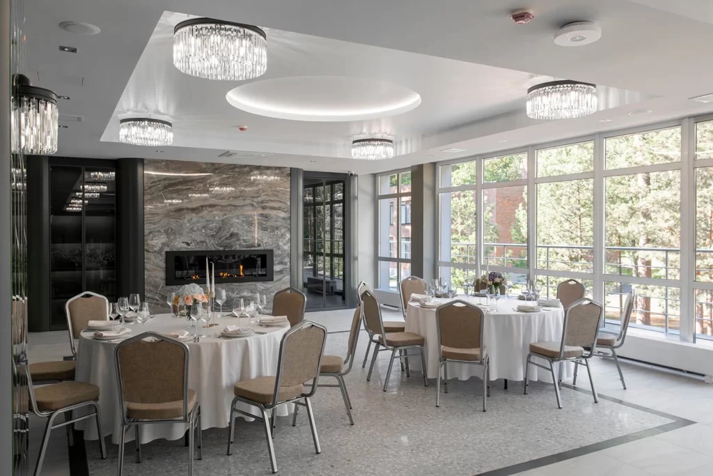 Самолетом до аэропорта Шереметьево, далее на аэроэкспрессе до станции «Ховрино», далее на метро до станции «Лесопарковая», далее на рейсовом автобусе №1365 до остановки «Фабрика Пролетарий», далее пройти 2,2 км до загородного-отеля.