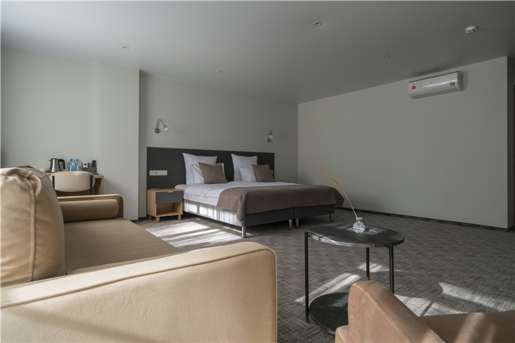 Поездом до ж/д вокзала ст. Подольск, далее на рейсовом автобусе №1365 до остановки «Фабрика Пролетарий», далее пройти 2,2 км до загородного-отеля.