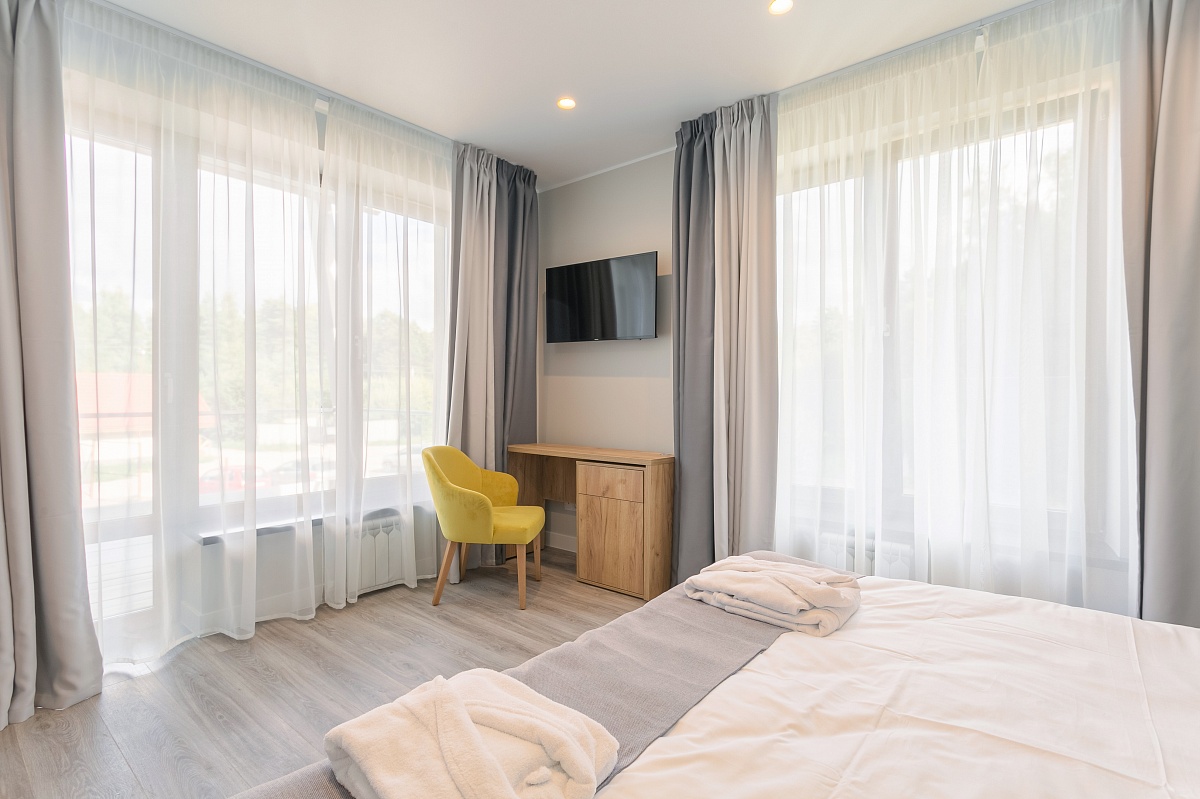 Замечательное место для отдыха компанией или семьёй с ребёнком. Для каждого тут найдётся занятие и соответствующий номер, в котором вам удастся отдохнуть от серых будней и ежедневной рутины. Вас встретит большая лесная территория, чистый воздух, рядом река.