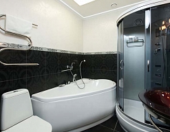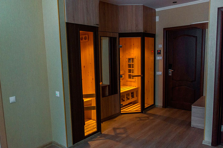 сауна, с ванной, с душевой кабиной, тапочки, туалетные принадлежности, фен, халат
