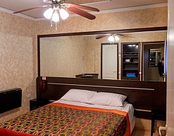 зеркало, кровать двуспальная, прикроватная тумбочка, стол, стулья, шкаф
