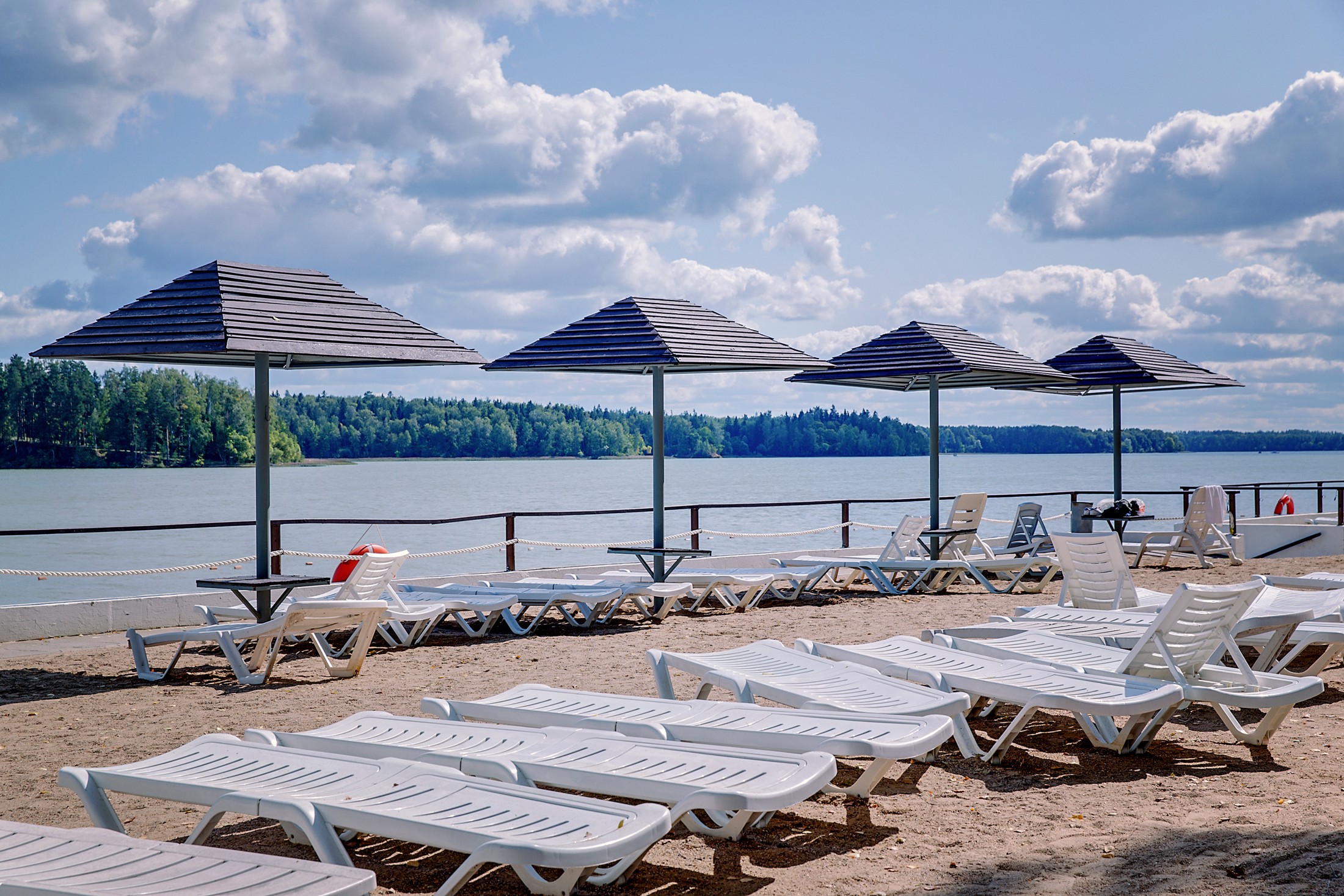 - оборудован: зонты, кабинки для переодевания, лежаки, навесы, шезлонги