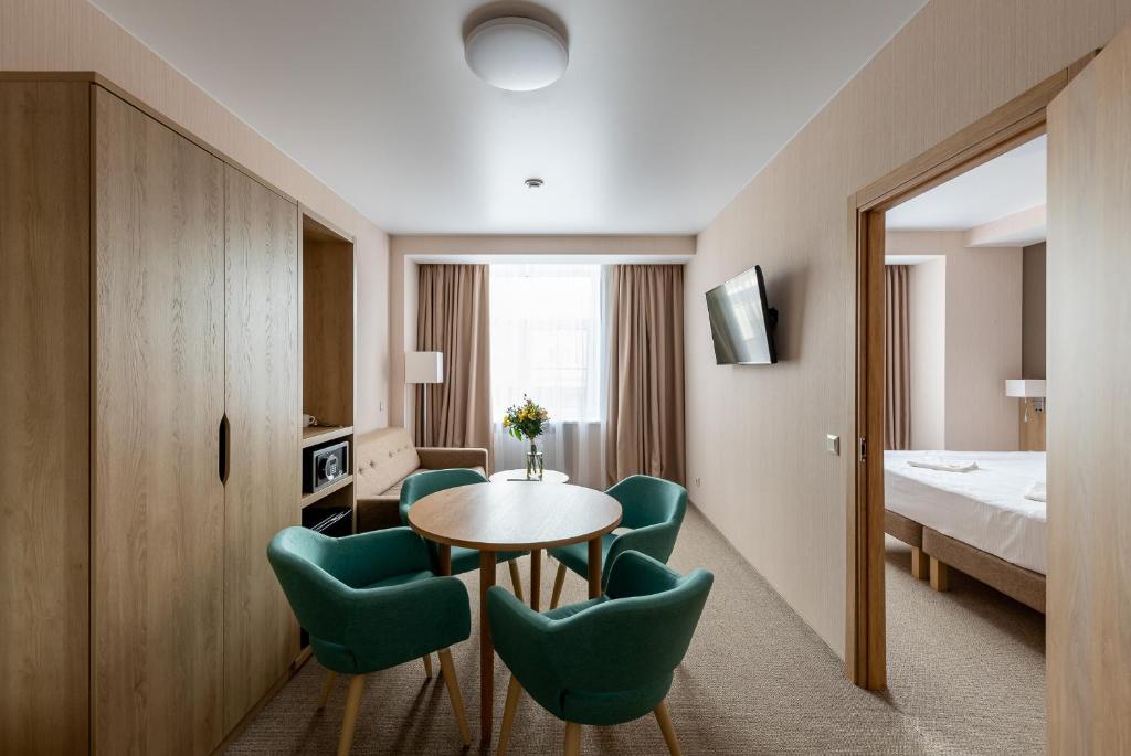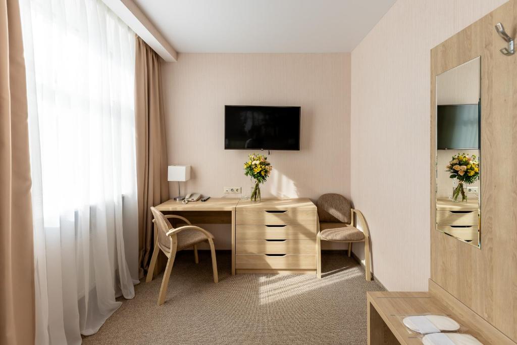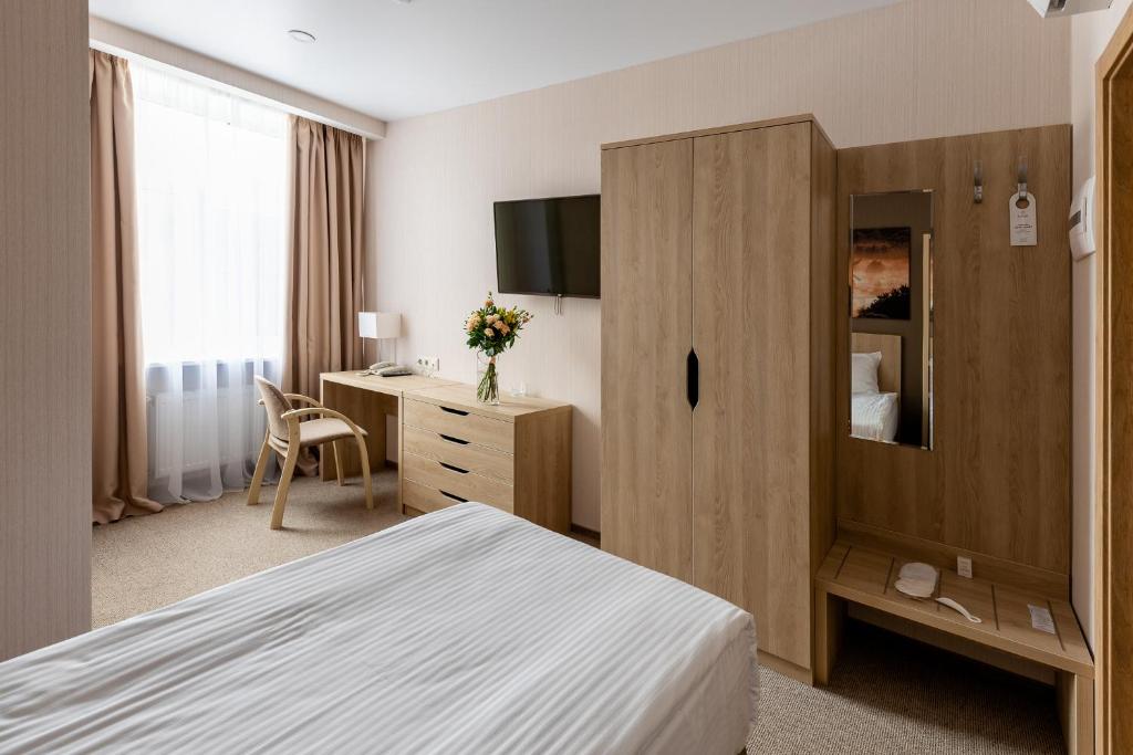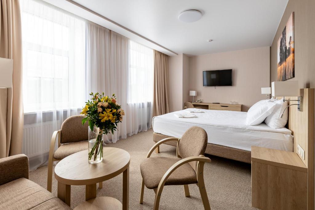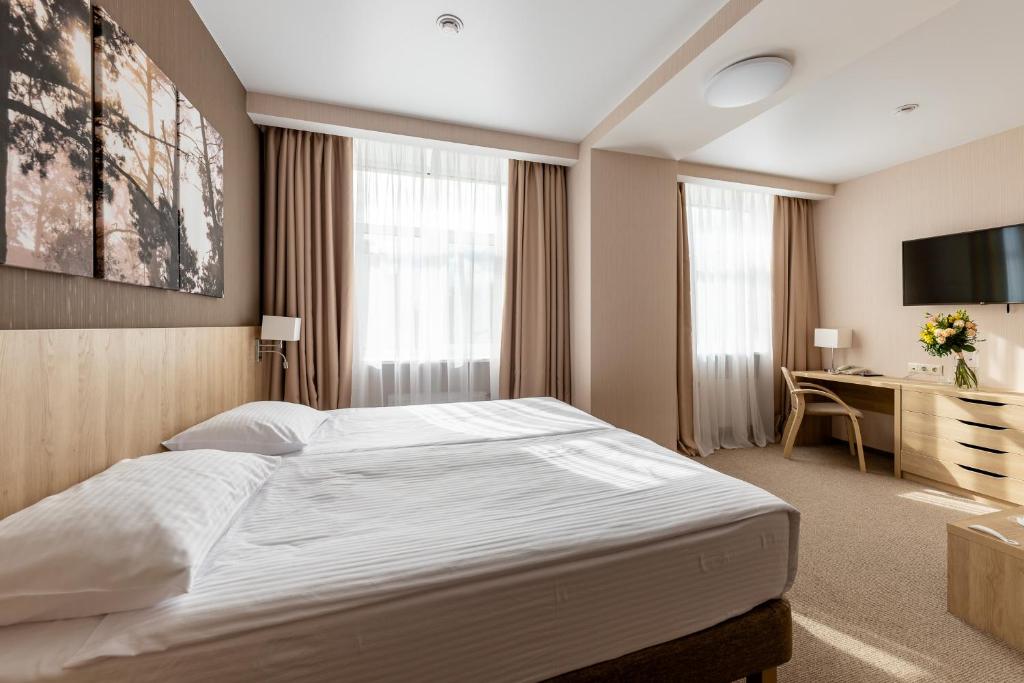 Проживание, 3-х разовое питание «шведский стол», Пользование бюветом с лечебной питьевой минеральной водой курорта "Новая Истра",Посещение тренажерных залов, посещение бассейна (1 сеанс/сутки),анимация, парковка.